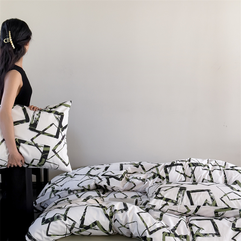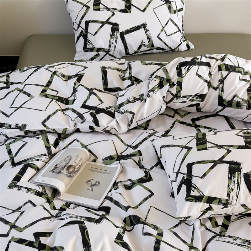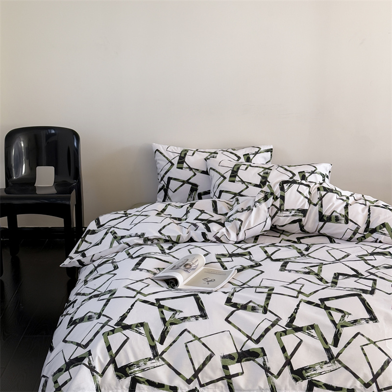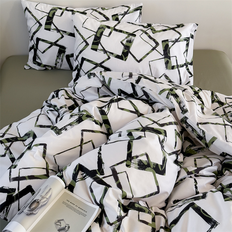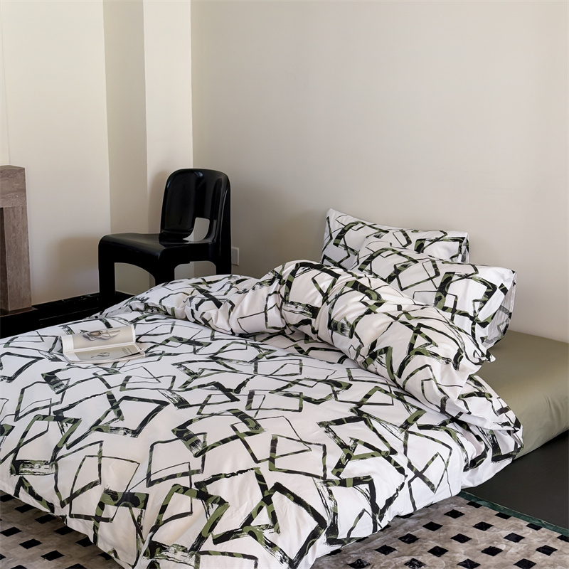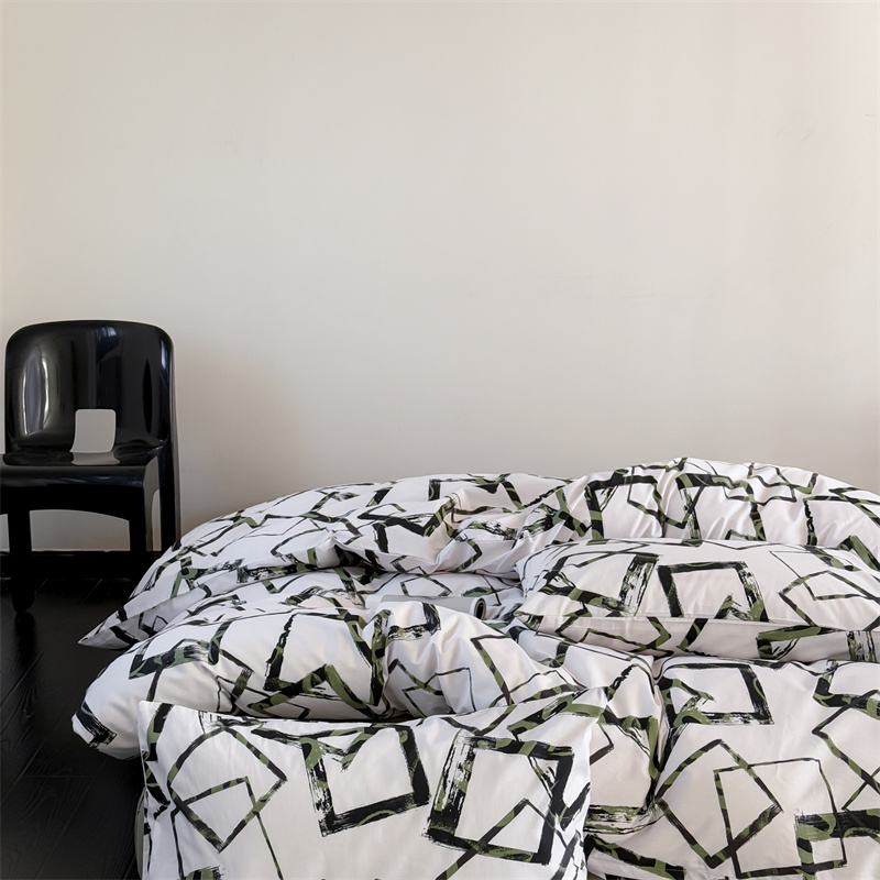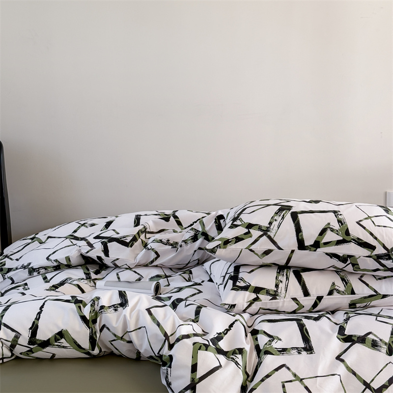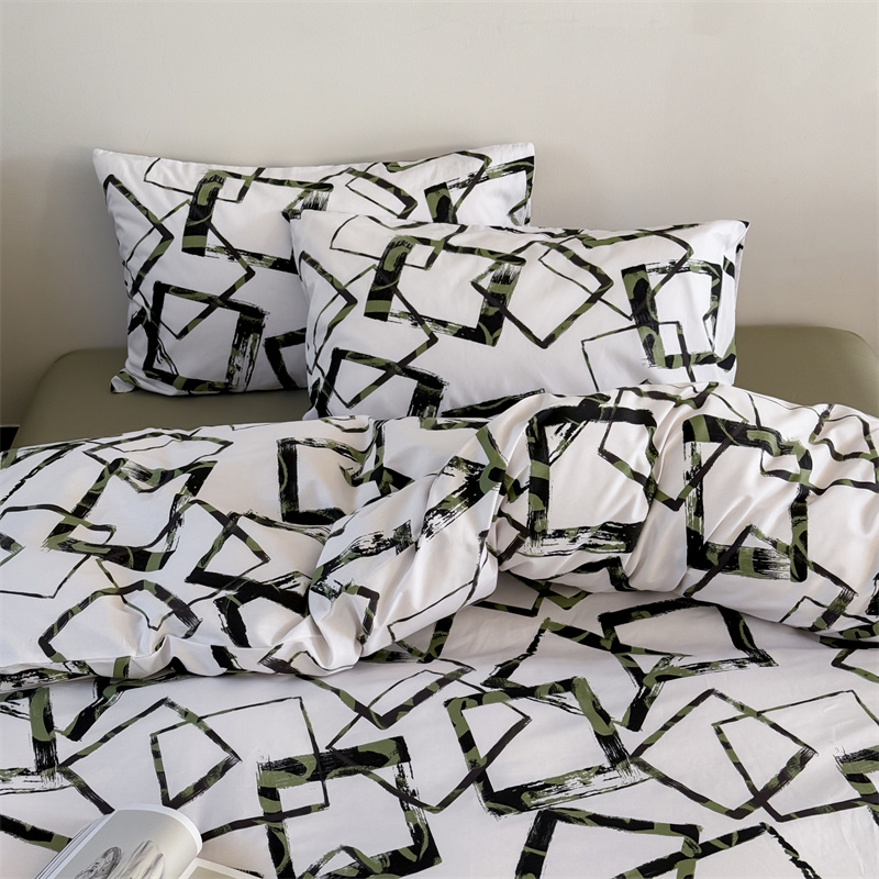 当前位置: 91家纺网 > 商品网购 > 床品套件 > 四件套 > 全棉普通四件套 > 窝米 2025新款全棉新品13370四件套 简约休闲风系列(悦溪、几何乐园) 几何乐园绿