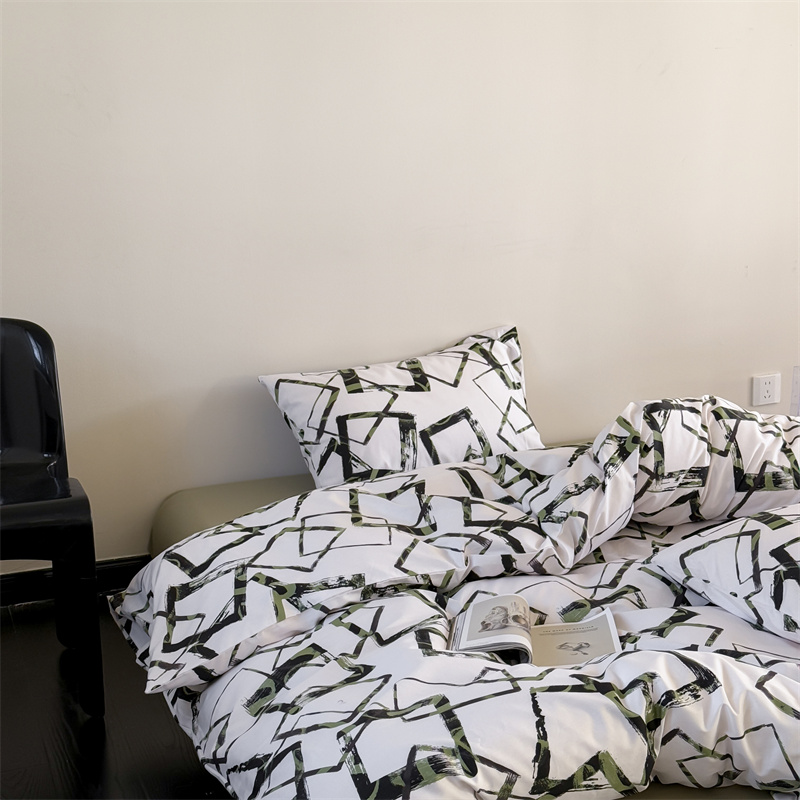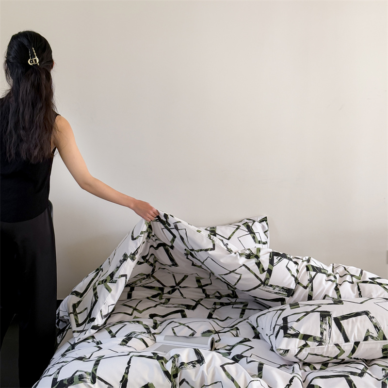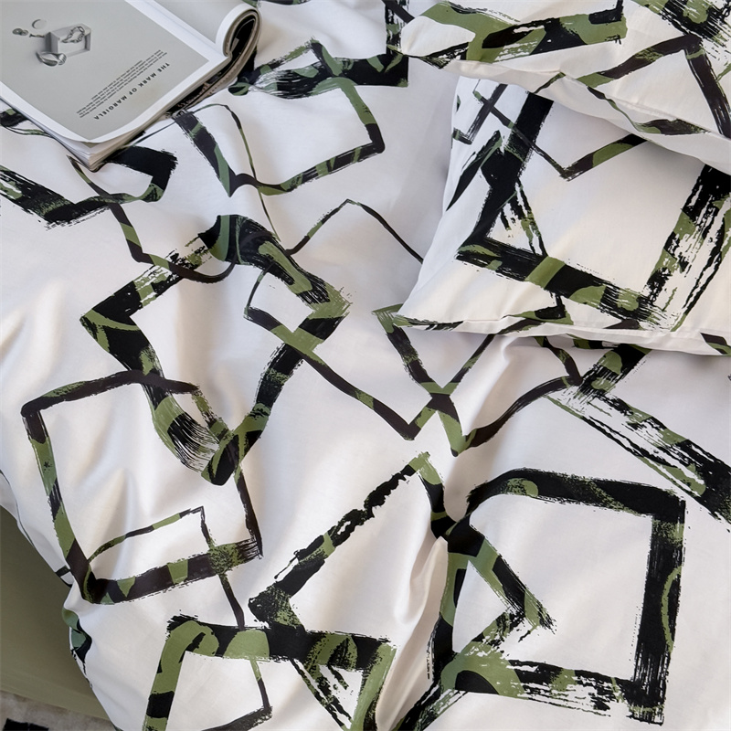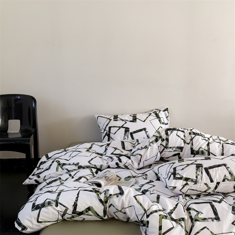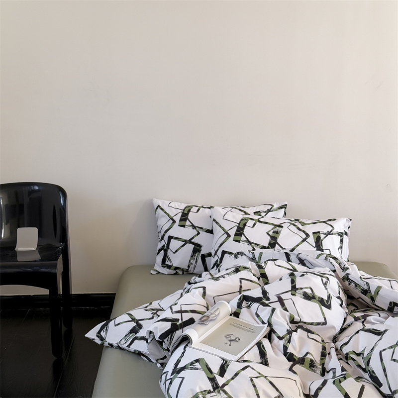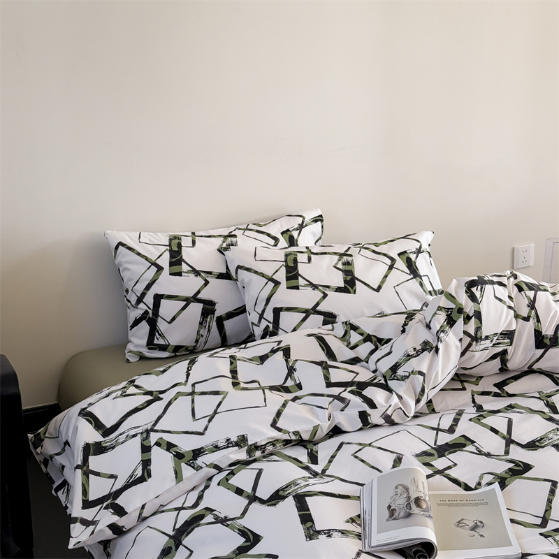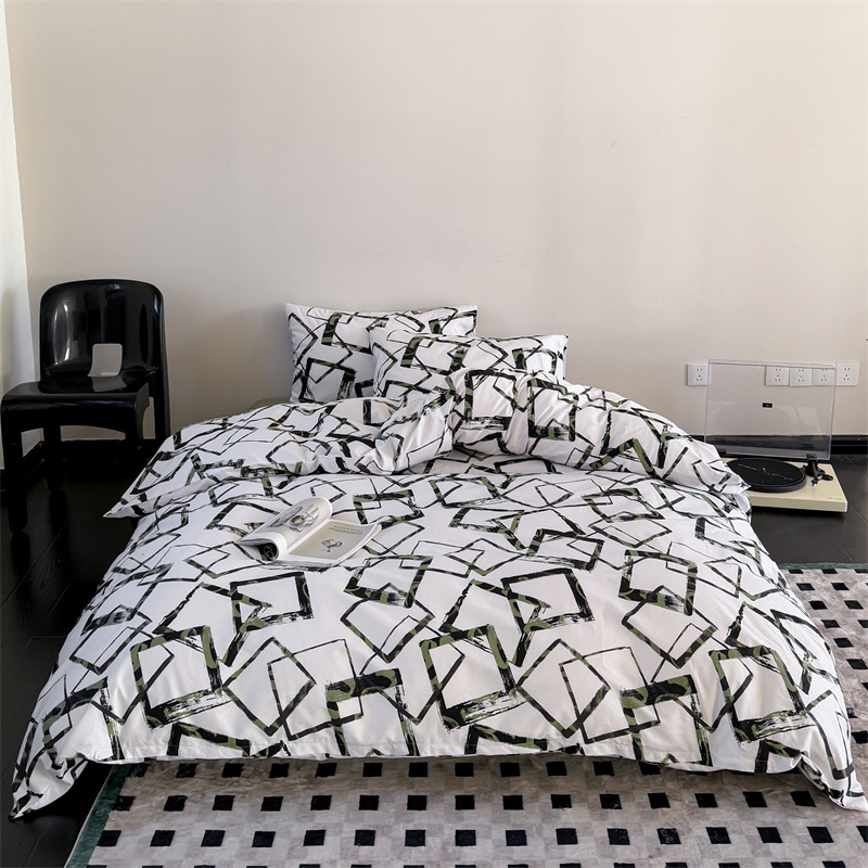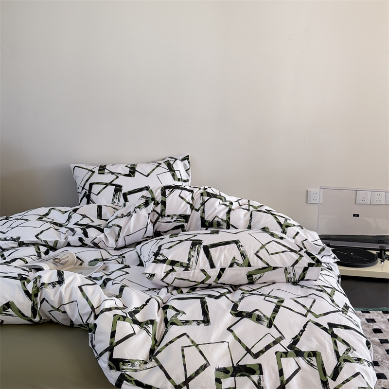 当前位置: 91家纺网 > 商品网购 > 床品套件 > 四件套 > 全棉普通四件套 > 窝米 2025新款全棉新品13370四件套 简约休闲风系列(悦溪、几何乐园) 几何乐园绿