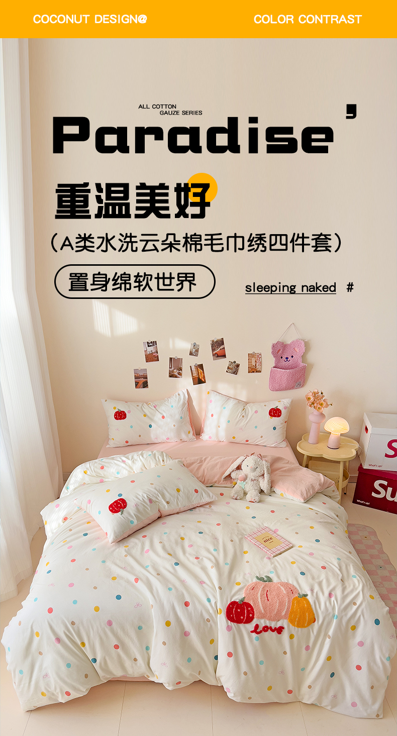 商品名称:(总)艺玲家纺 2025新款水洗云朵棉毛巾绣印花加绣花系列四件套