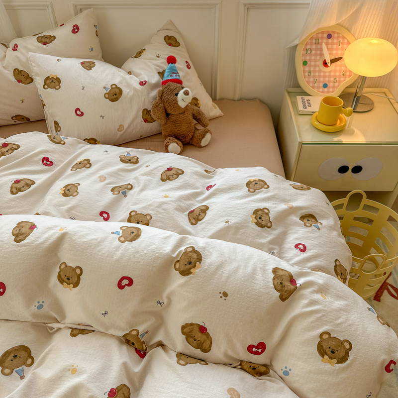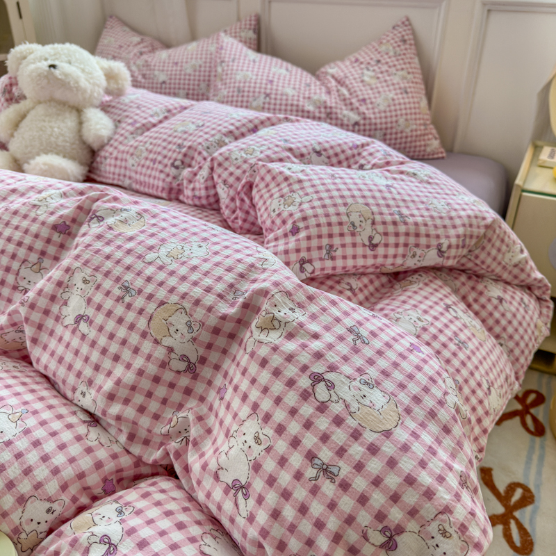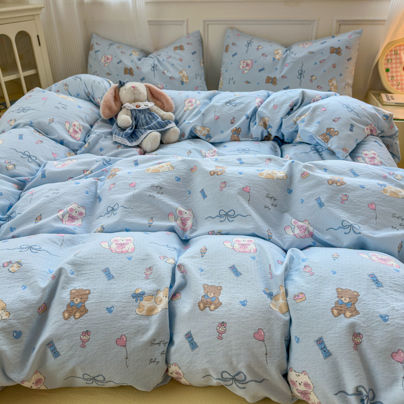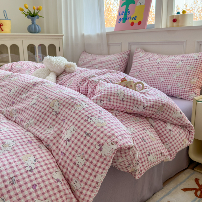 (总)玉海棠家纺 2026新款古法水洗仿棉云感纱四件套,豹纹,初恋,粉格KT猫,格调熊,海边童话,蝴蝶飞,狂欢part,彩色心动,蓝调兔语,绿野仙踪,满天星,浅蓝童话集,软萌七彩兔,甜品屋,甜心花园,小狗日记