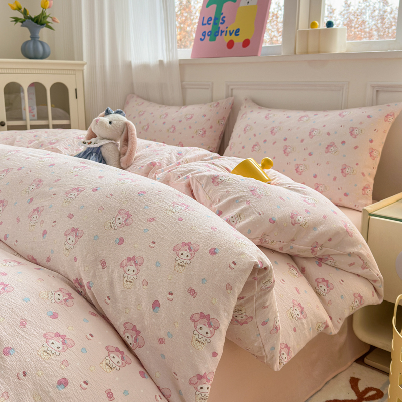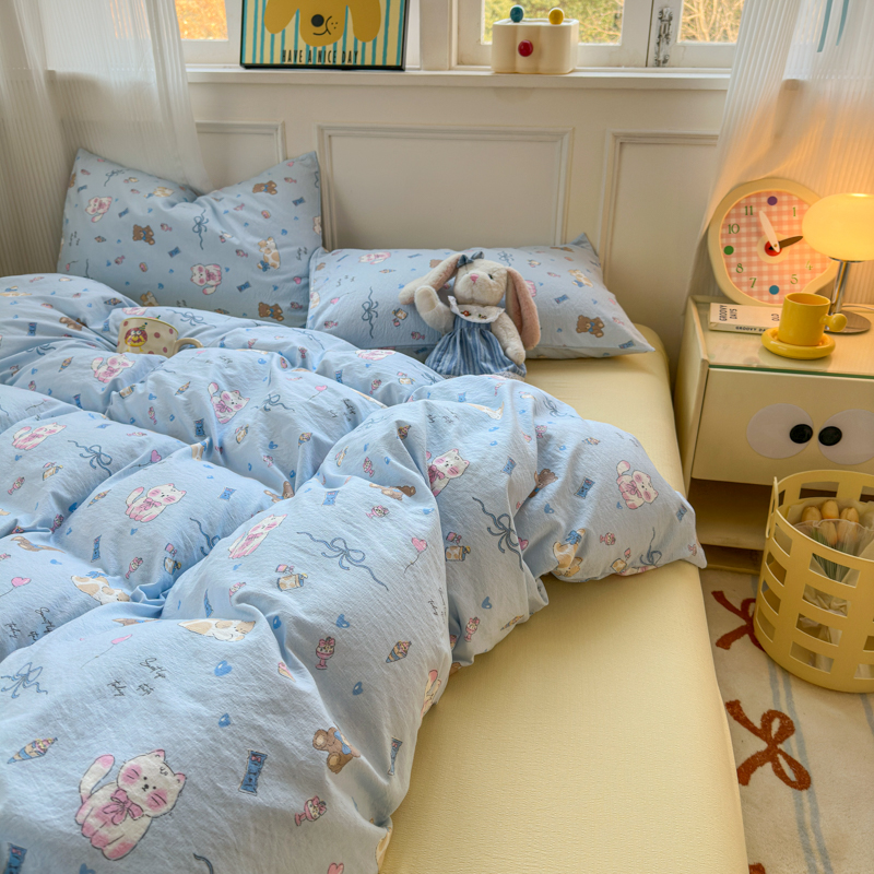 (总)玉海棠家纺 2025新款双层皱皱纱四件套,大脸喵,生日派对,芝士小猫,像素猫咪,点点草莓,夕颜,甜品猫,可爱喵星球,动物王国,焦糖樱桃,奶芙芙,青苹果乐园,星光草莓猫,炫彩独角兽,彼岸花,春风里,蛋糕小猫,动物狂欢会米,凯蒂猫,萌物家族,晴天,小确幸,芝士奶酪,蓝汐