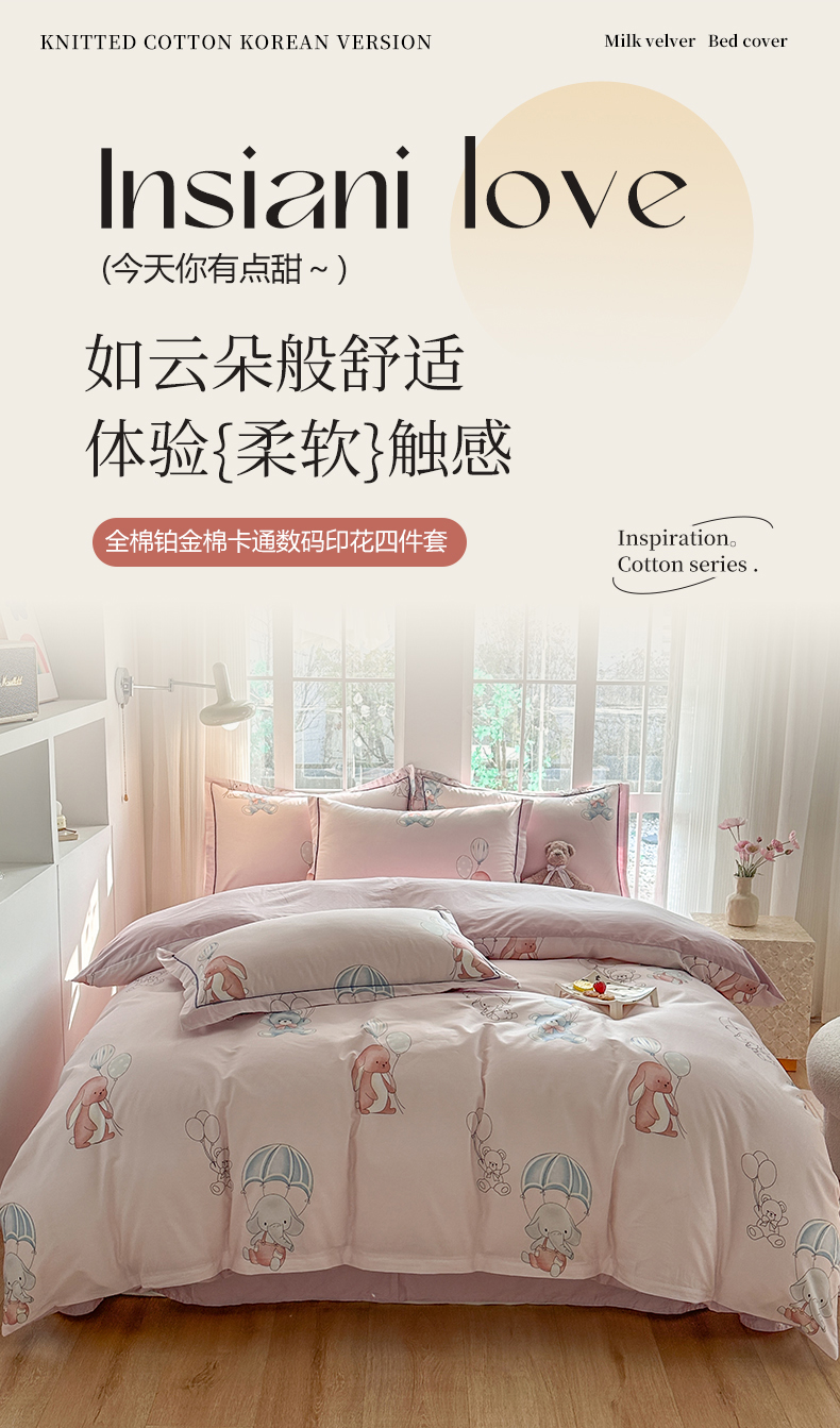 当前位置: 91家纺网 > 商品网购 > 床品套件 > 四件套 > 全棉普通四件套 > 眷恋家纺 2025年春夏全棉铂金棉13376数码印花四件套 欢乐园-粉(有小号)