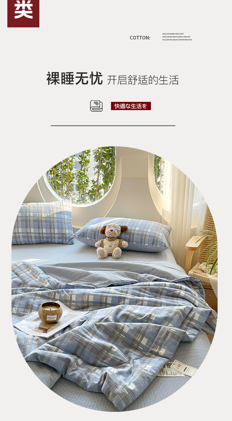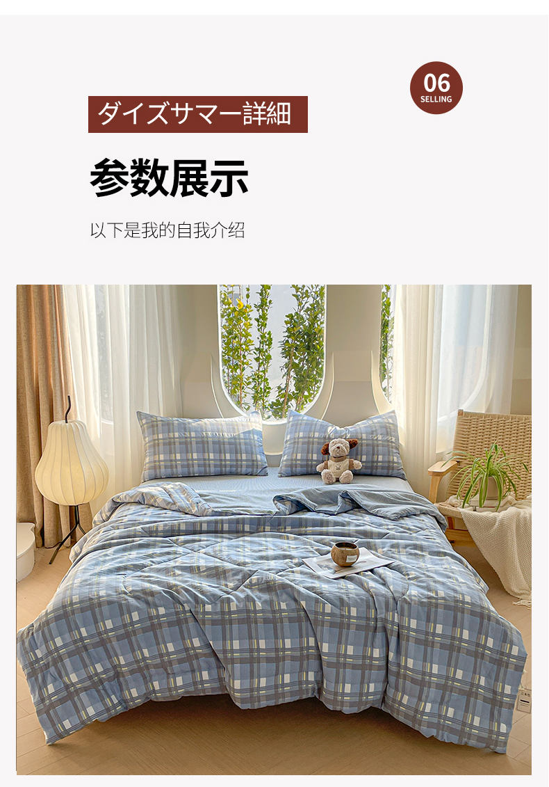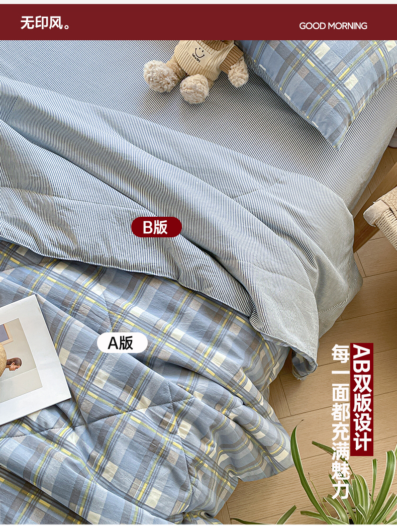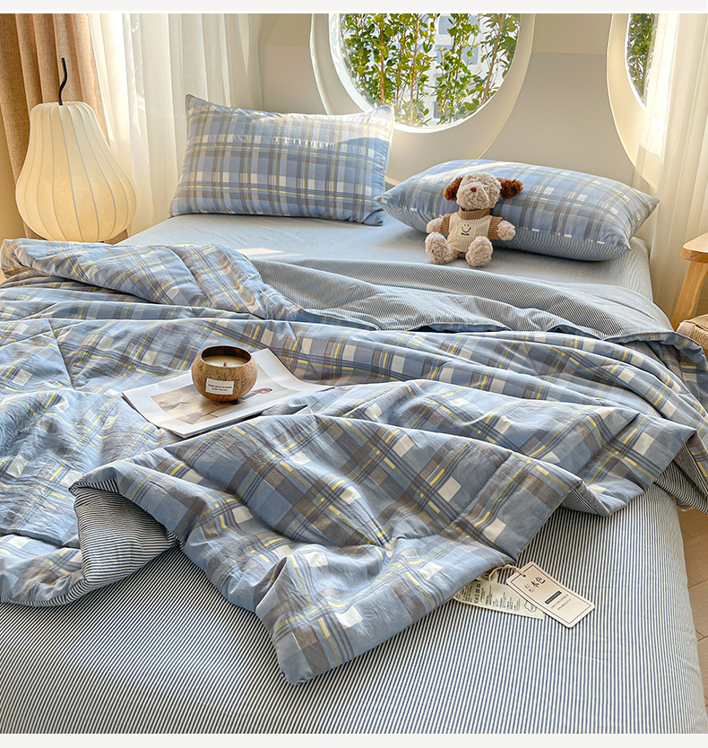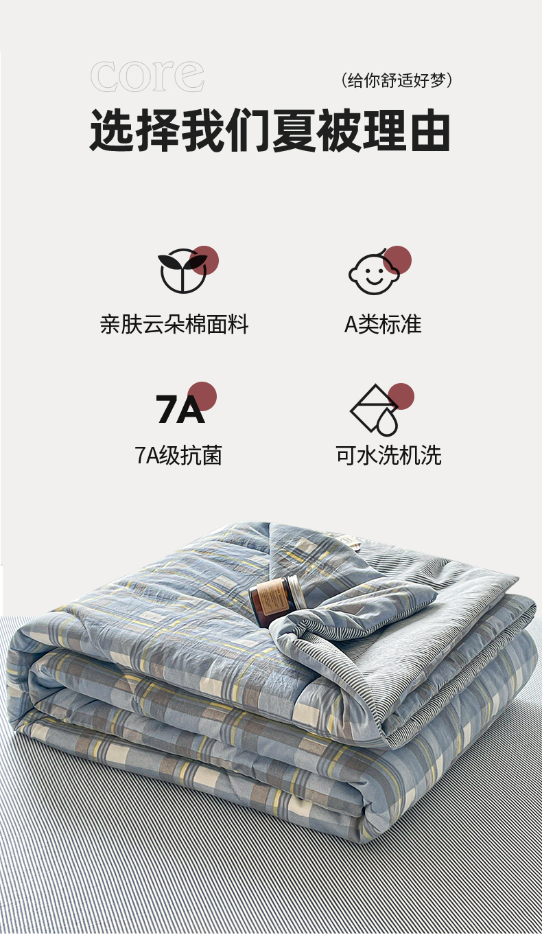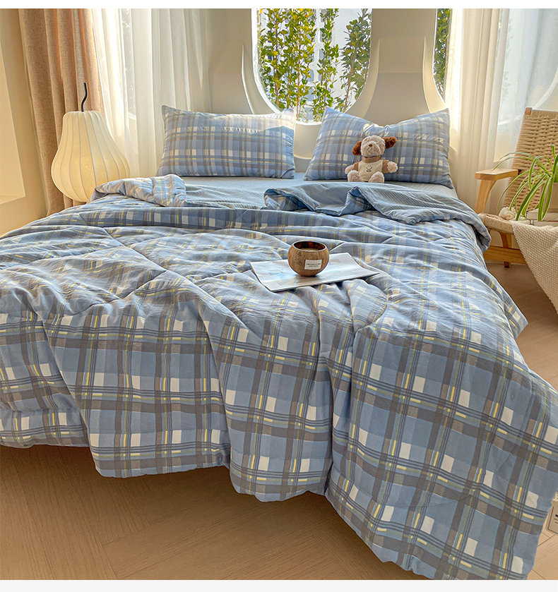 商品名称:老帅的工厂店 2025新款云朵棉无印风格子夏被 麦田蓝