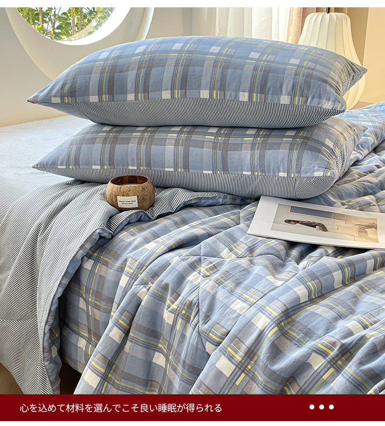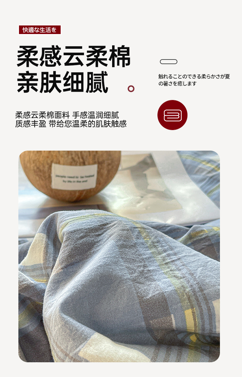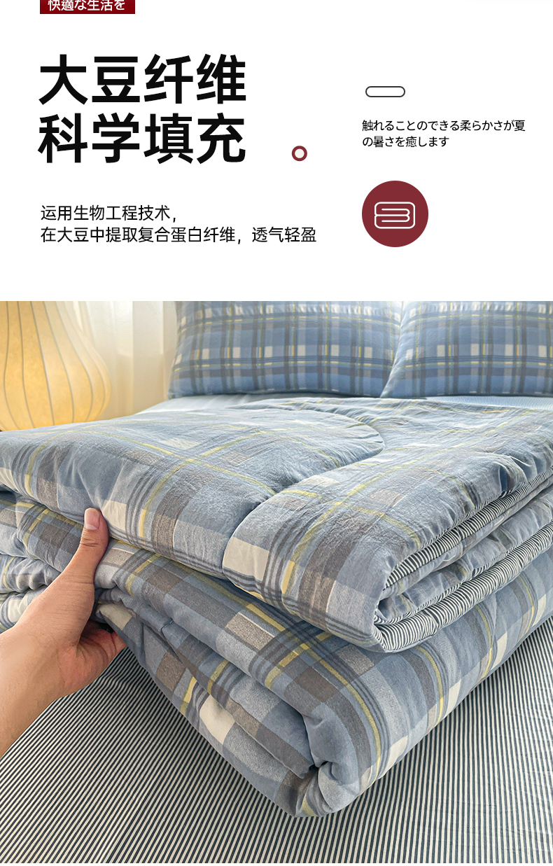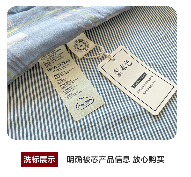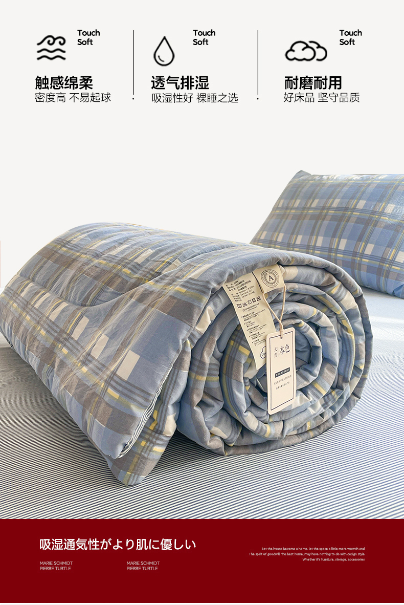 商品名称:老帅的工厂店 2025新款云朵棉无印风格子夏被 麦田蓝