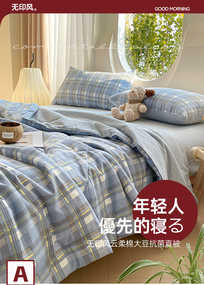 (总)老帅的工厂店 2025新款云朵棉无印风格子夏被,冰激凌粉,洛卡蓝,麦田黄,麦田蓝,青柠绿,蓝小格,粉小格,黄小格,咖大格,蓝大格,绿小格