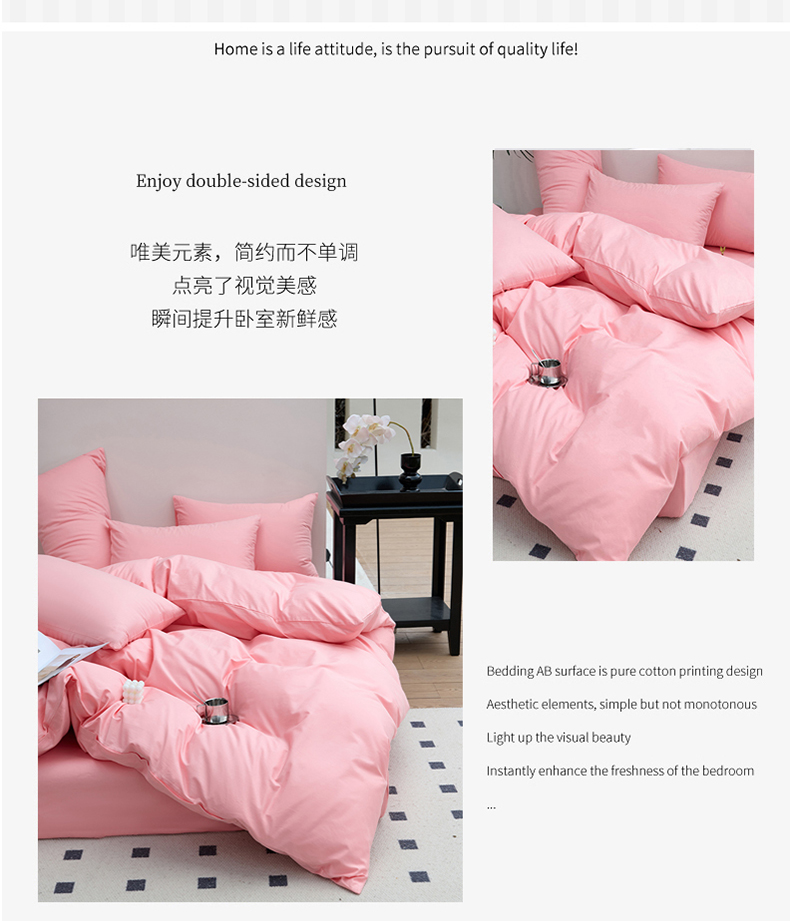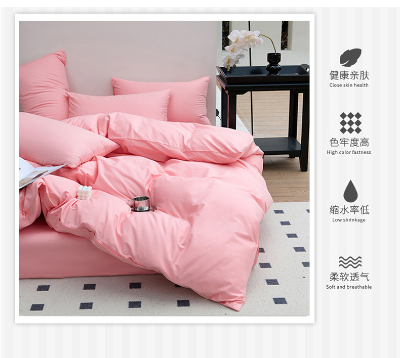 (总)期遇2025新款全棉13374纯色四件套,粉玉,海棠红,幻影灰,橘黄,卡其,嫩绿,苹果绿,青蓝,香芋紫,洋红