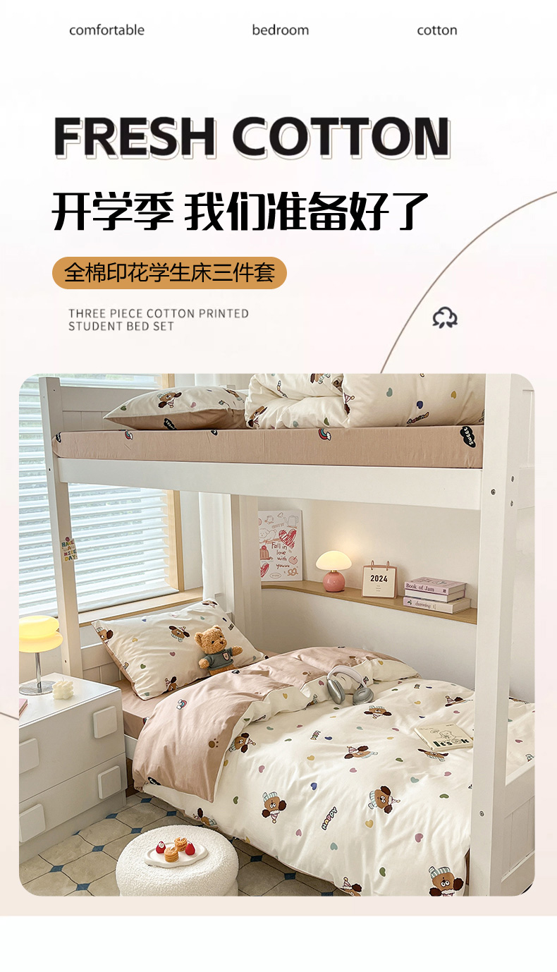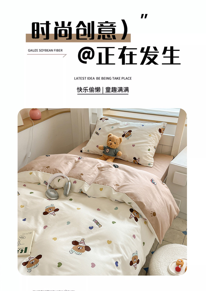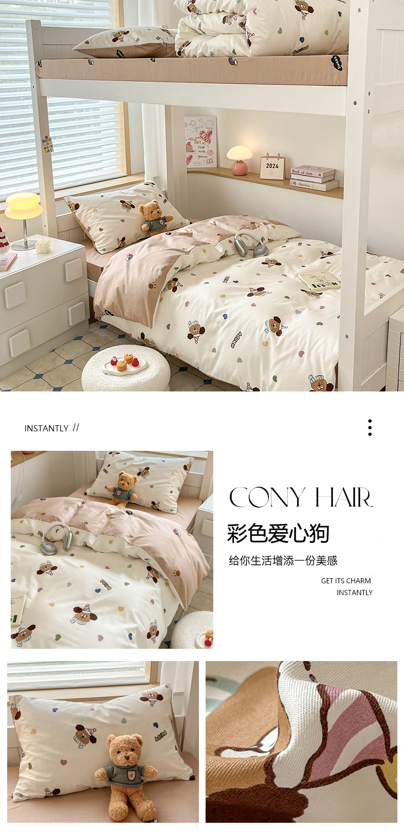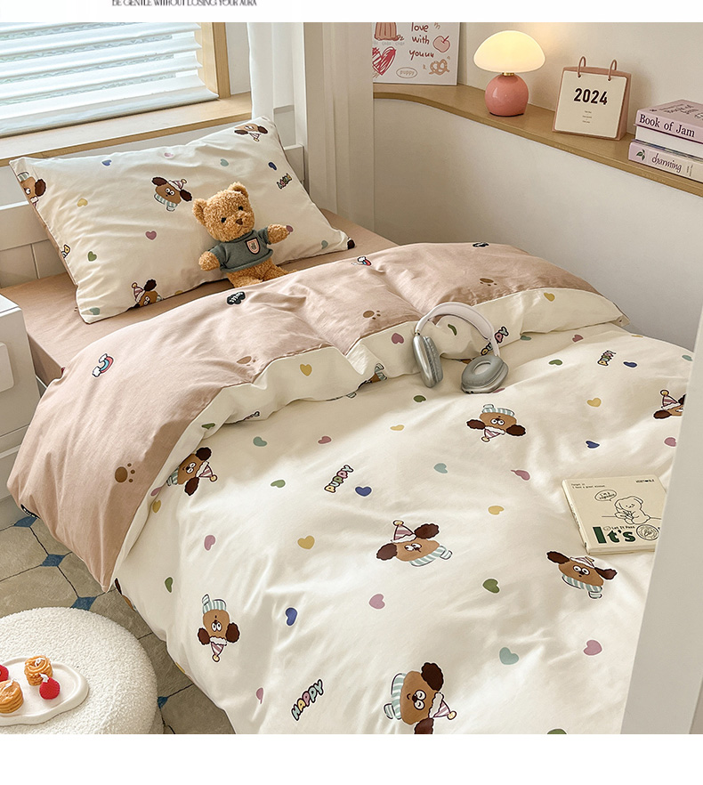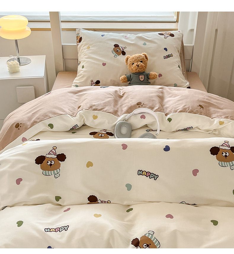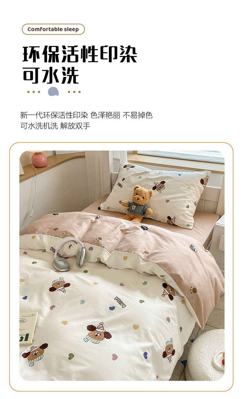 当前位置: 91家纺网 > 商品网购 > 床品套件 > 三件套 > 慕尚家纺 2025新款全棉印花学生三件套套件 彩色爱心狗