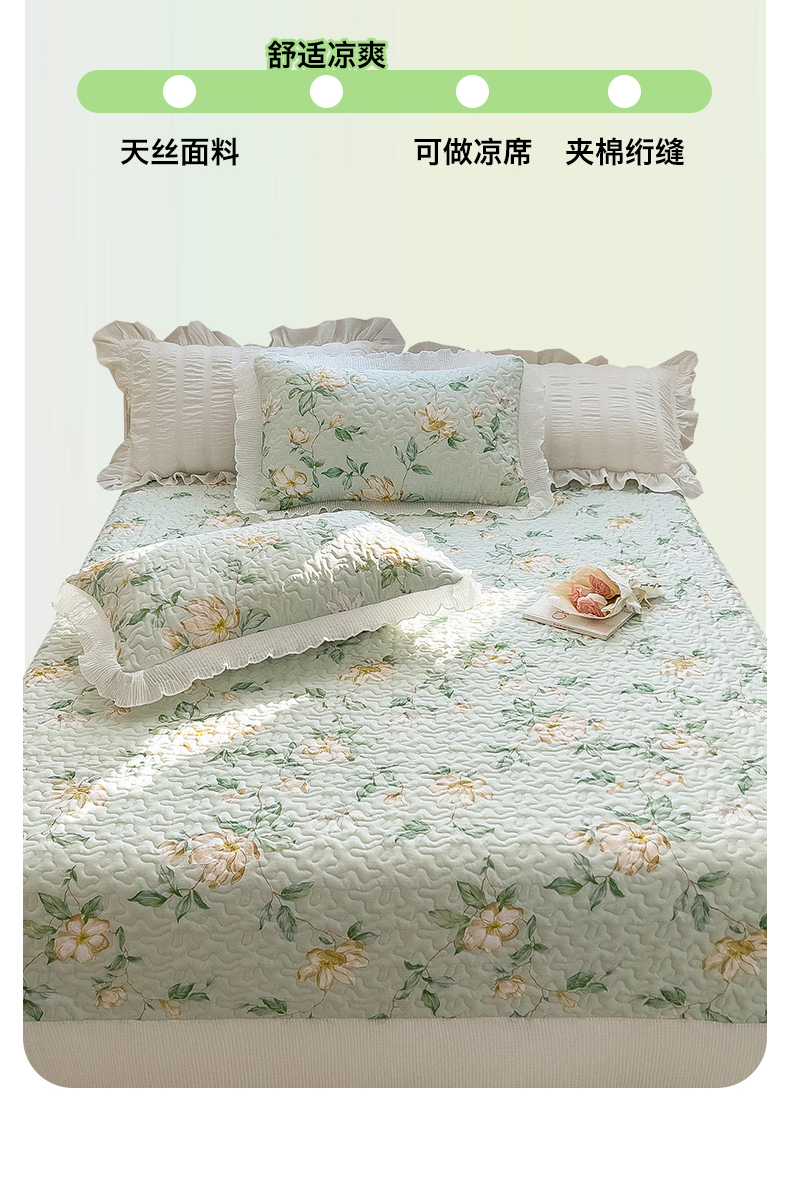 商品名称:迪梦思家纺 2025新款A类莱赛尔兰精天丝韩版印花床盖床裙床褥夏被 床盖-春晓