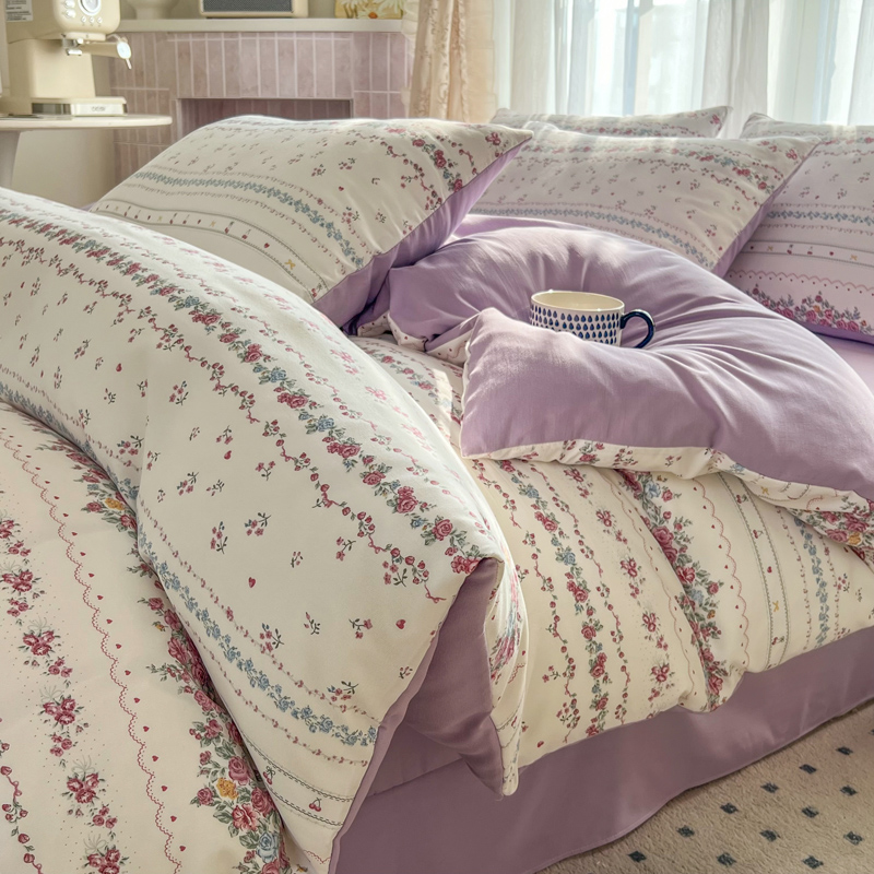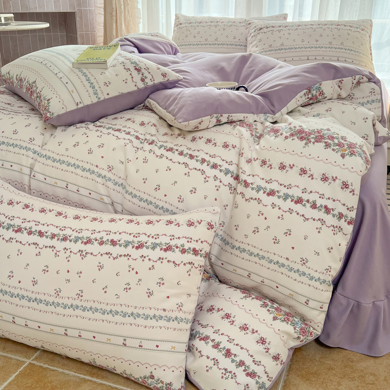 (总)麦瑞家纺 2024新款加厚磨毛小清新印花花边款四件套,安娜苏,缤纷世界,橙萌兔,花田梦,花仙子,克拉恋人,快乐兔兔,兰花情,米兰春天,怦然心动,浅浅花语,晴空,小美好,郁金香,元气桃桃