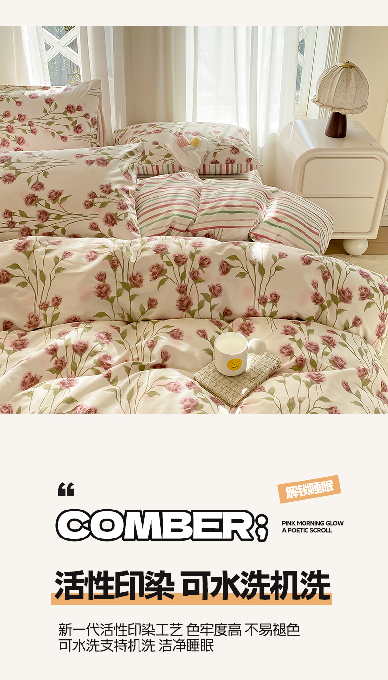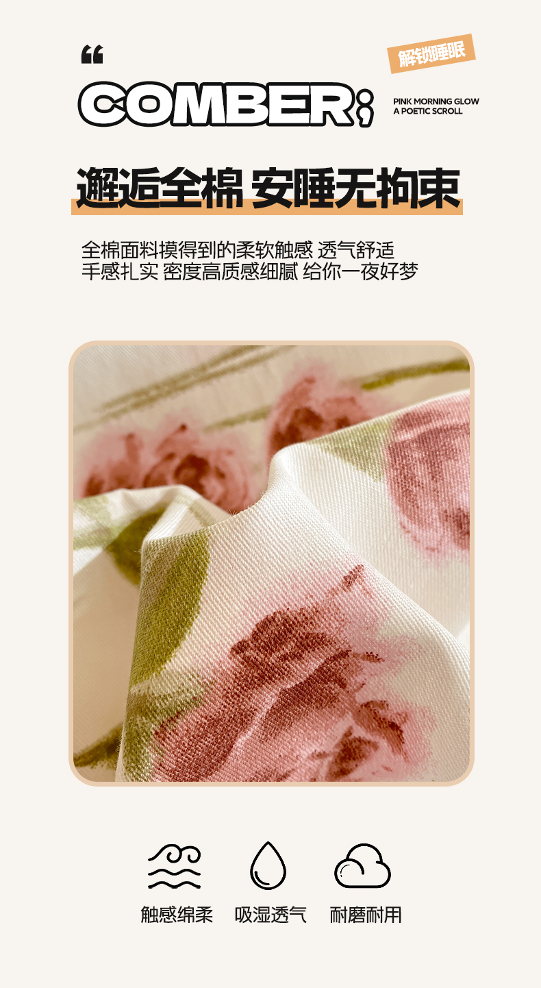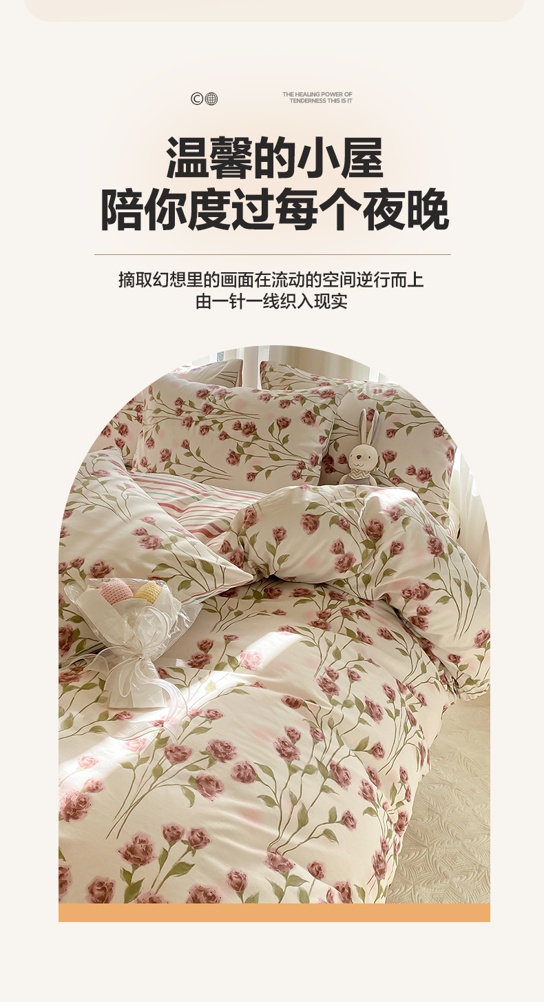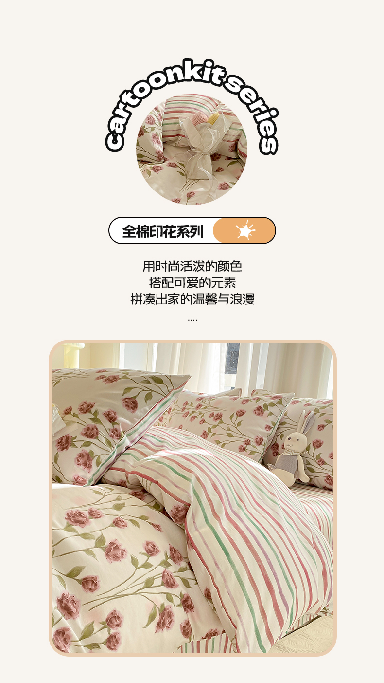 商品名称:帅露家纺 2025开春新品全棉喷气13070小清新印花纯棉全棉四件套 邂逅