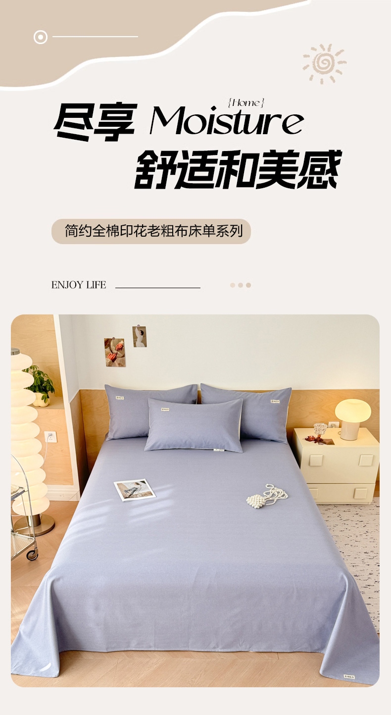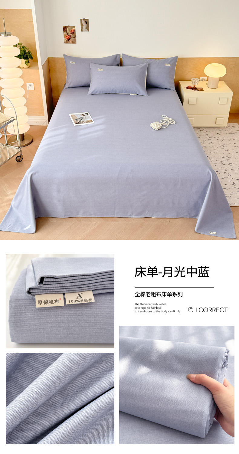 眠博士2025新款全棉老粗布床单 老粗布床单-月光中蓝