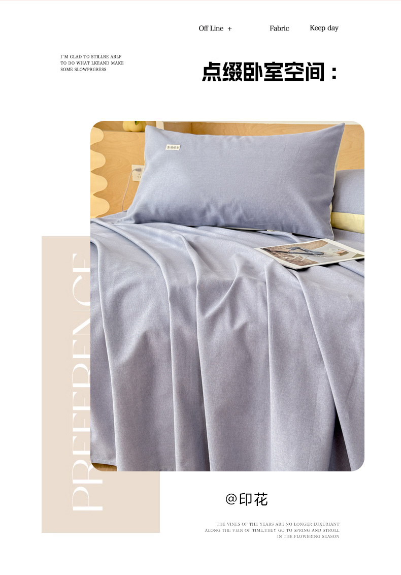 • 91家纺网 家纺一手货源 找家纺 眠博士2025新款全棉老粗布床单 老粗布床单-月光中蓝