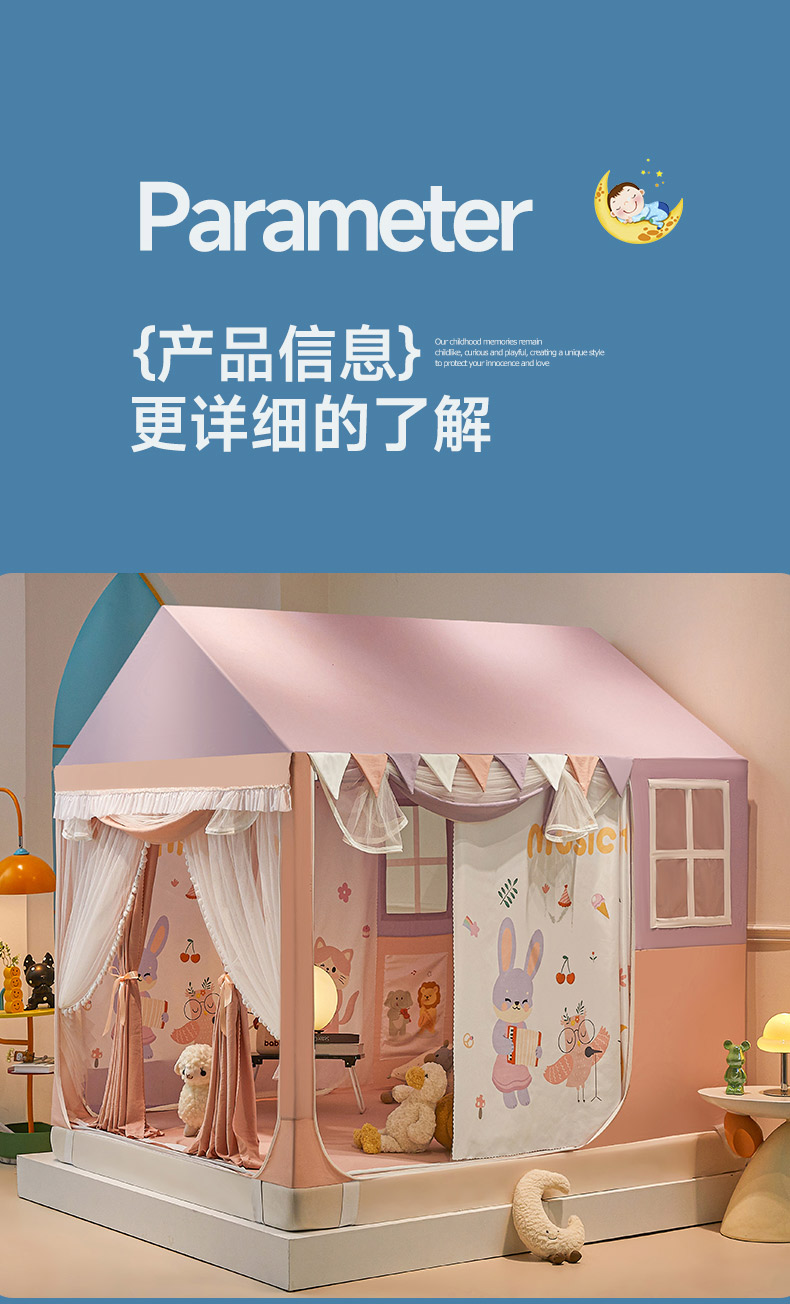 商品名称:富莱星2025新款卡通儿童小房子蚊帐系列 1鹦鹉音乐派对-粉