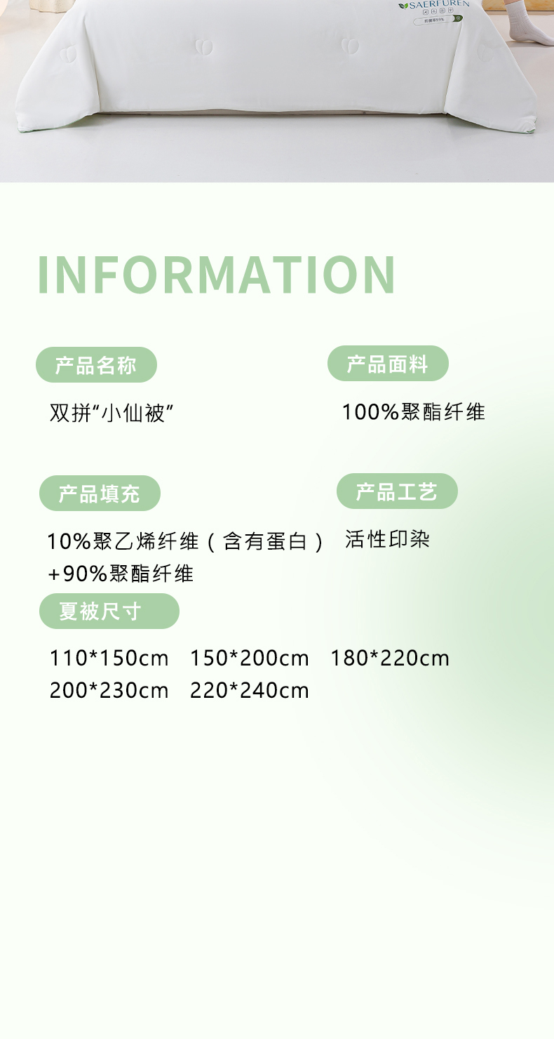 商品名称:憨豆2025新款升级双拼夏被空调被纯色夏凉被大豆纤维被子被芯直播跨境【含质检报告买家秀】小仙被-果绿白