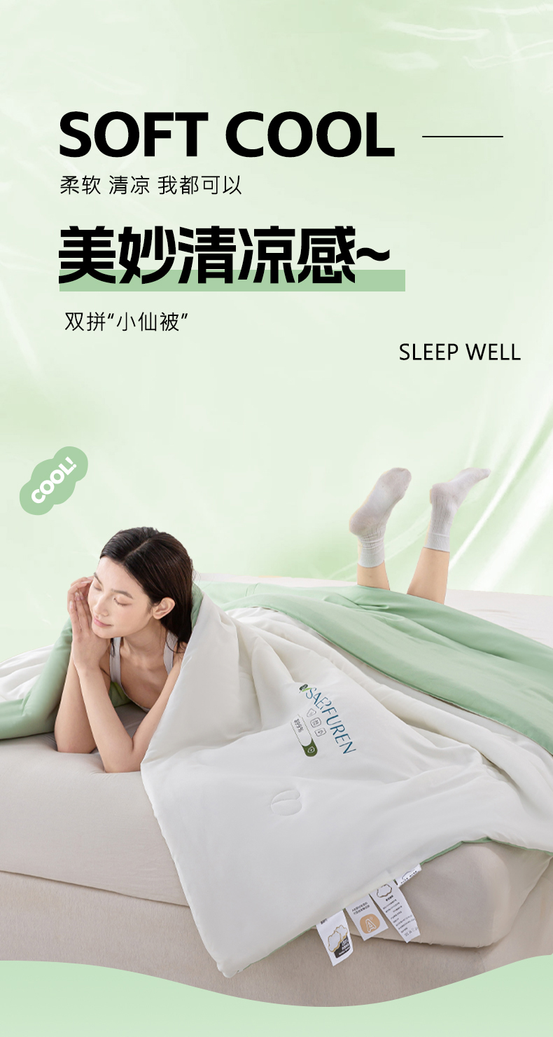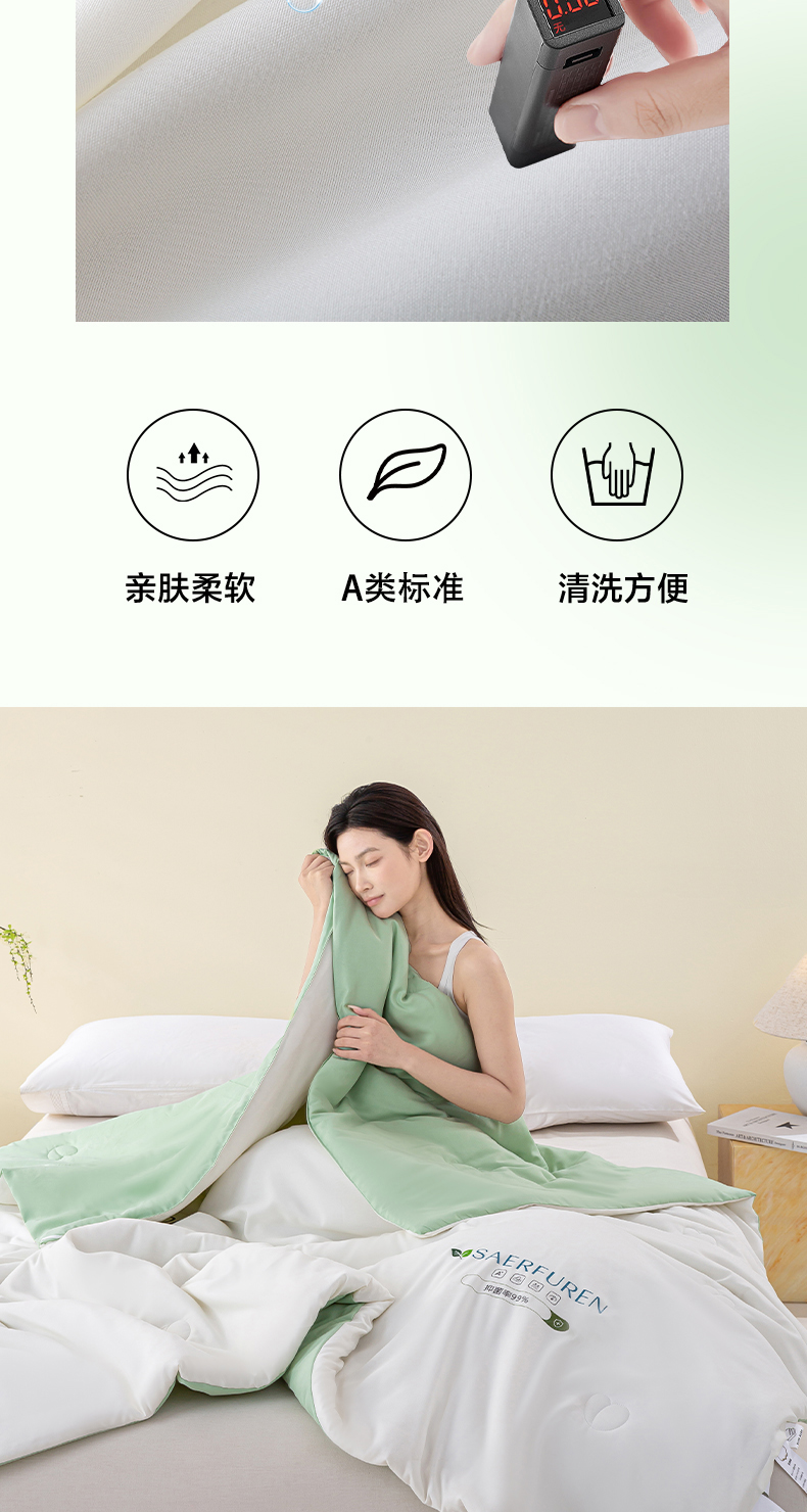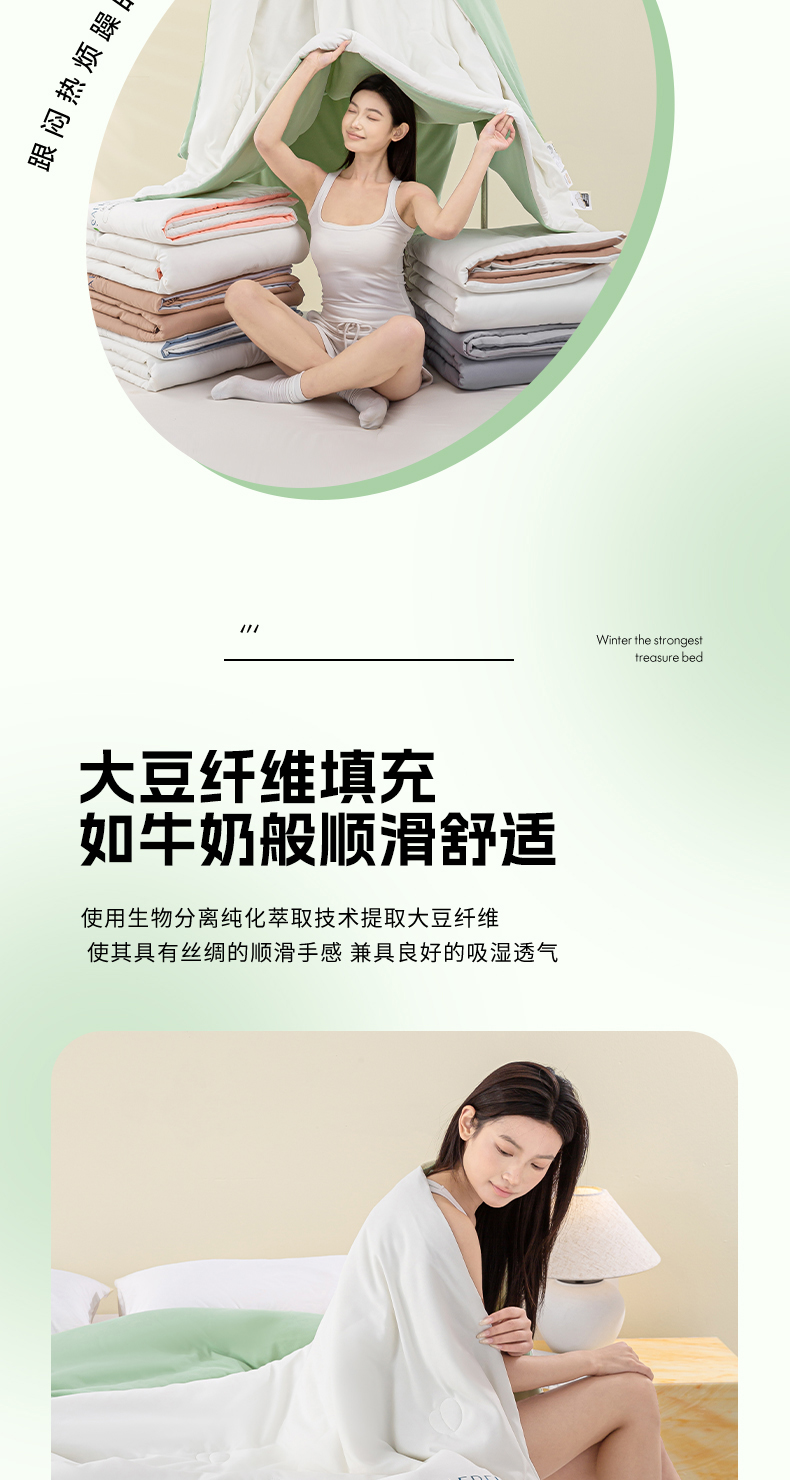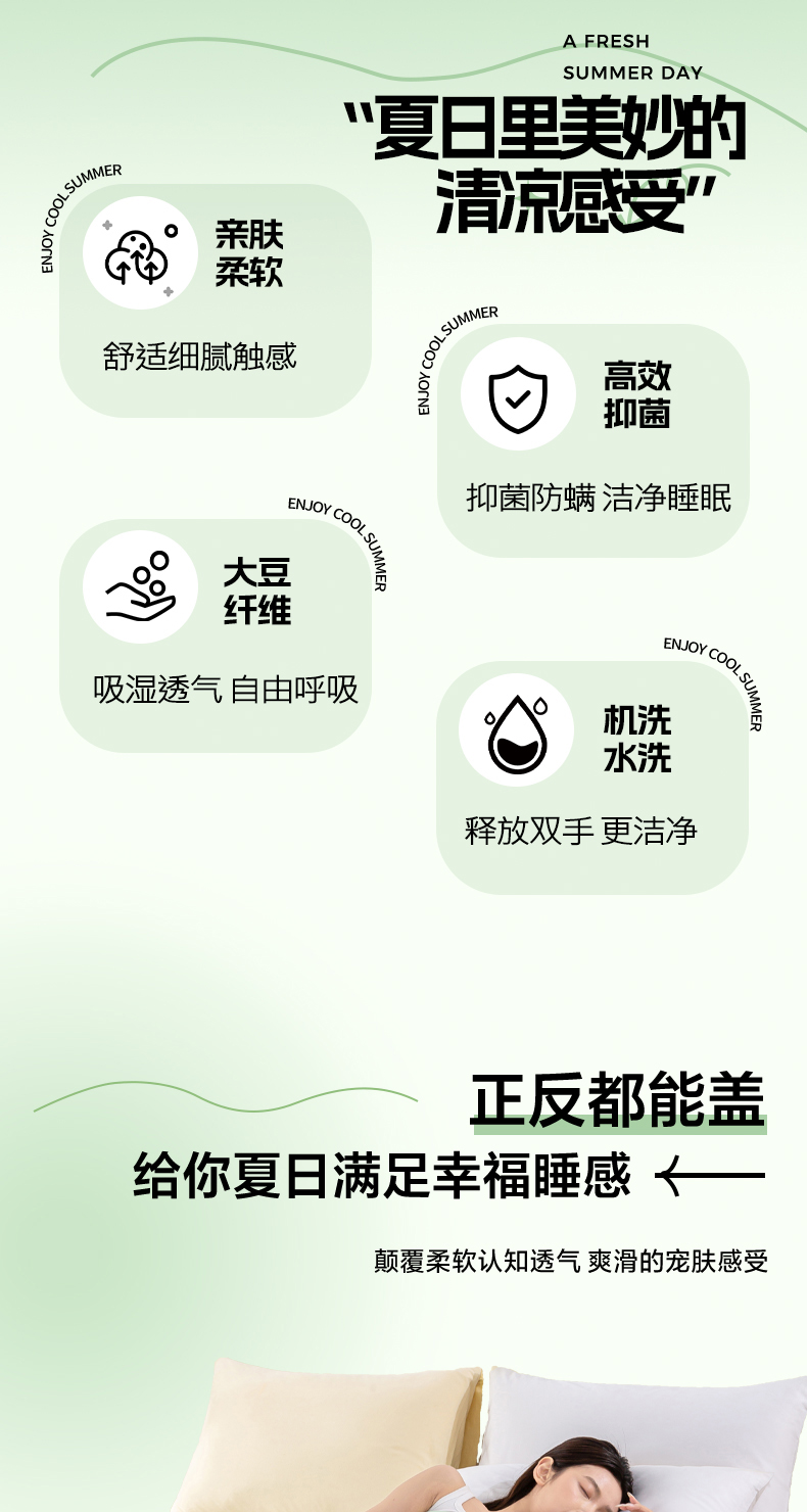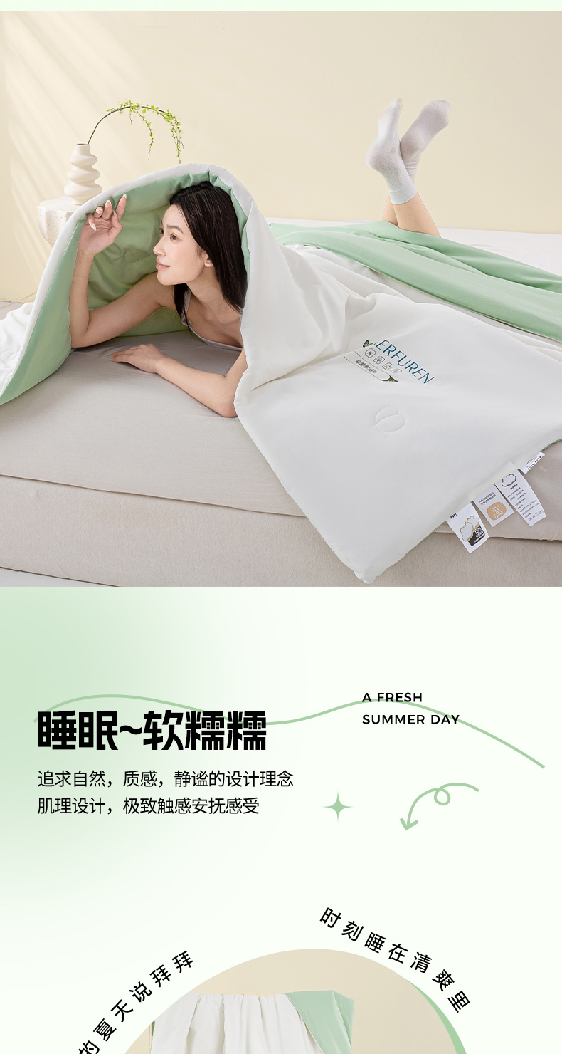 被子 > 夏被 > 憨豆2025新款升级双拼夏被空调被纯色夏凉被大豆纤维被子被芯直播跨境【含质检报告买家秀】小仙被-果绿白