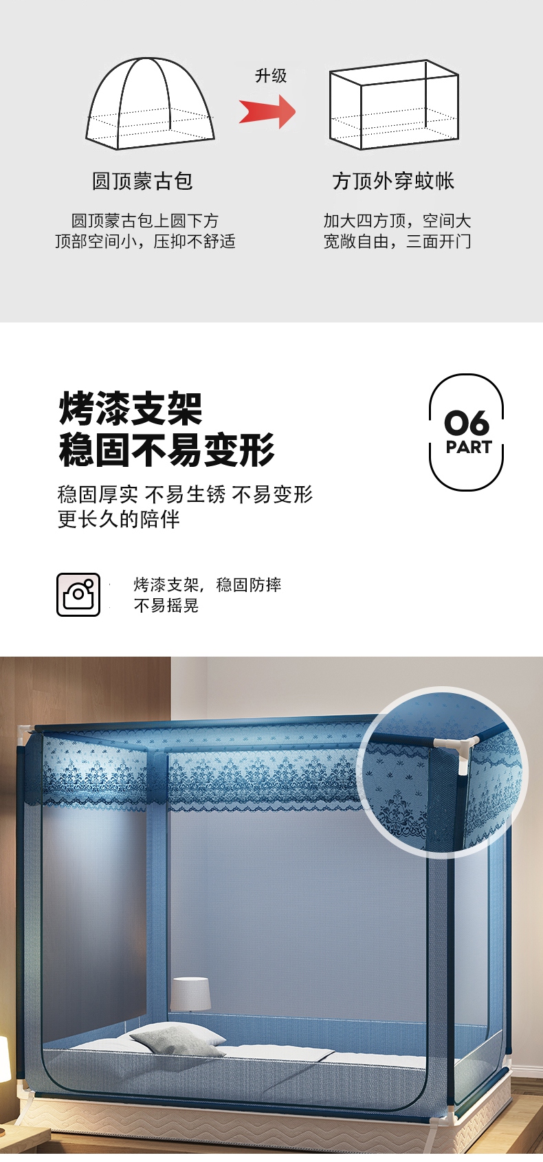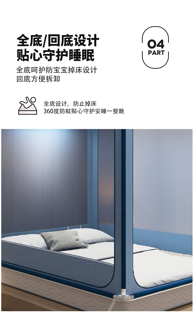 飞轮海蚊帐 2025防蚊全底回底外穿坐床蚊帐-Z55 T55 Z52 Z55黛蓝 全底