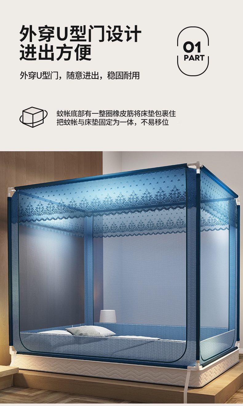商品名称:飞轮海蚊帐 2025防蚊全底回底外穿坐床蚊帐-Z55 T55 Z52 Z55黛蓝 全底