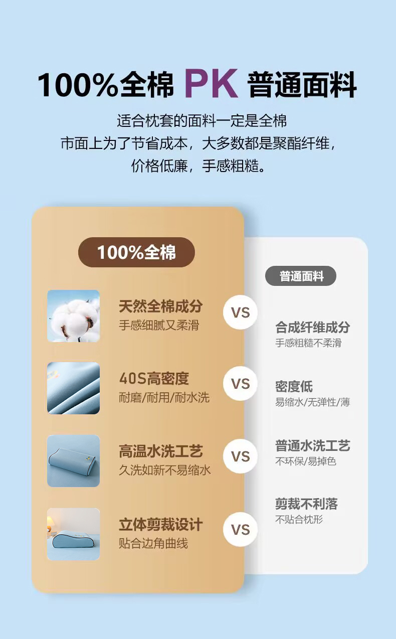 商品名称:小猫派 2025新款磨毛全棉刺绣乳胶枕套纯棉儿童记忆枕芯套加厚吸汗成人颈椎枕套 前程似锦蓝