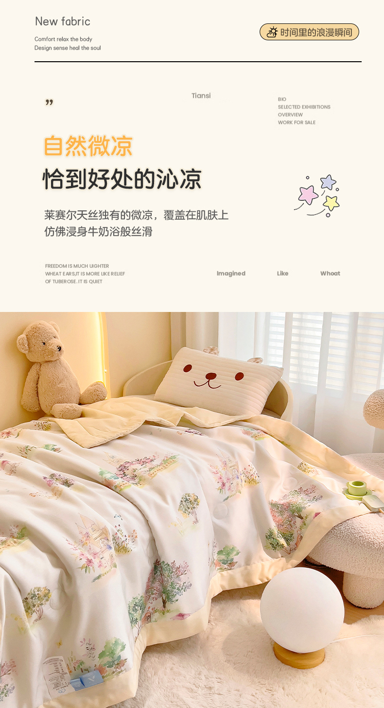 商品名称:御棉坊 2025新款A类50天丝数码印花夏被子被芯 午后花园
