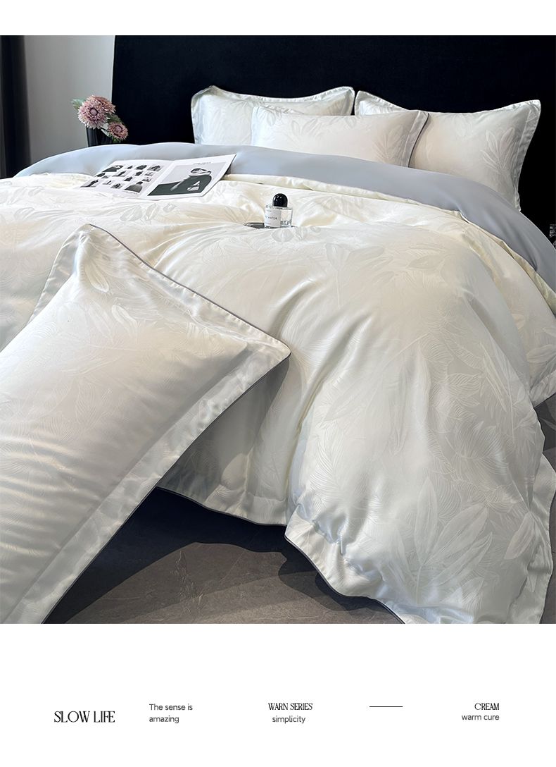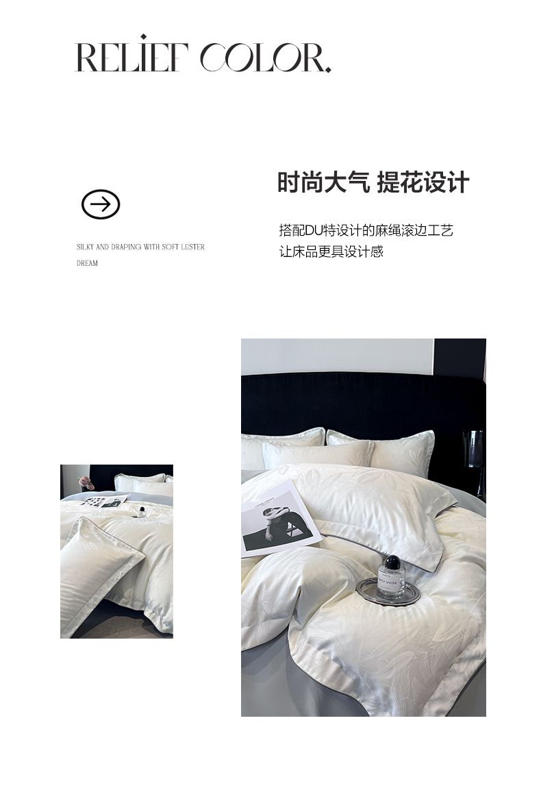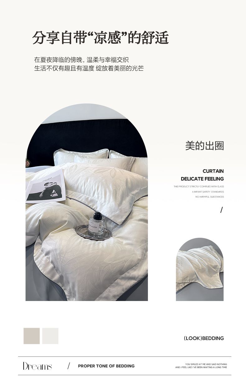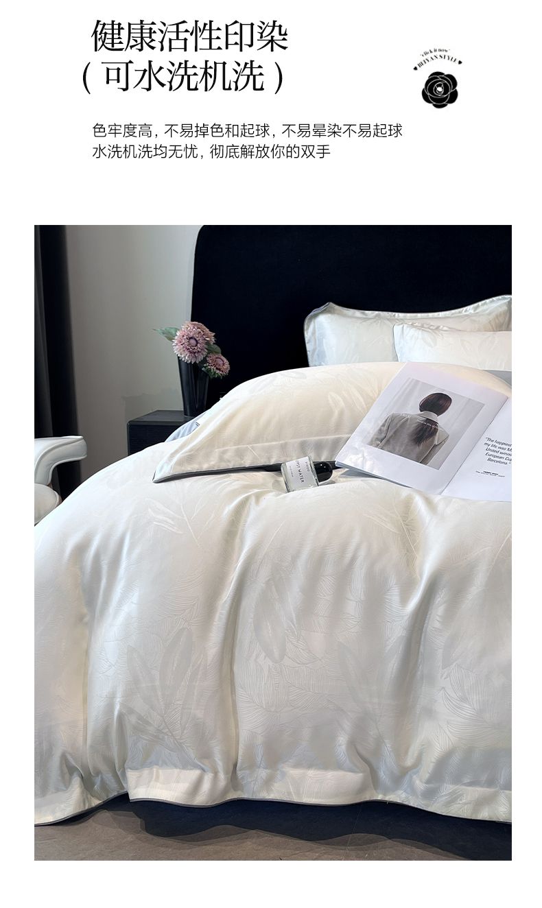 米彩家纺 2025新款A类水洗真丝天丝提花四件套 一叶深清白拼灰