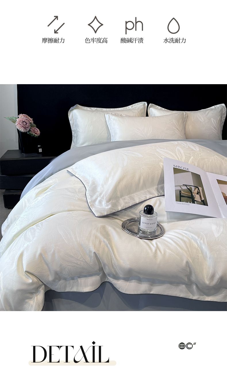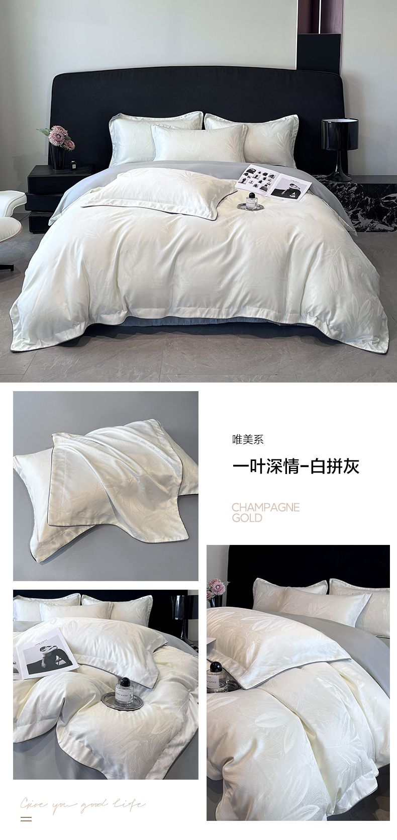 商品名称:米彩家纺 2025新款A类水洗真丝天丝提花四件套 一叶深清白拼灰