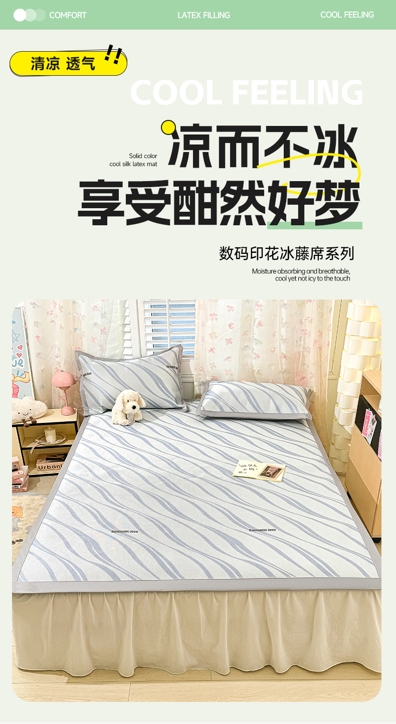 • 91家纺网 家纺一手货源 找家纺 川悦生活 2025新款数码印花冰藤席 青水集沐