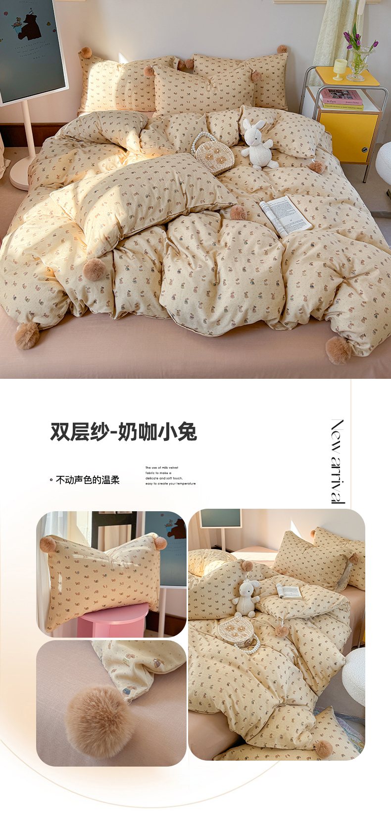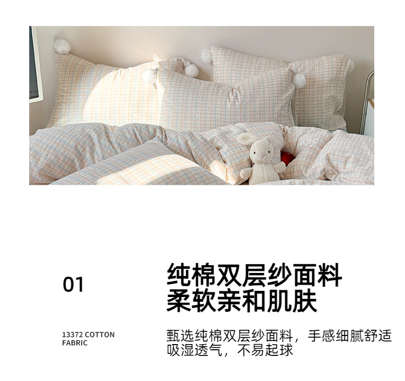 金爱家 2025新款亲肤舒适纯棉双层纱四件套 双层纱-炫彩小樱桃