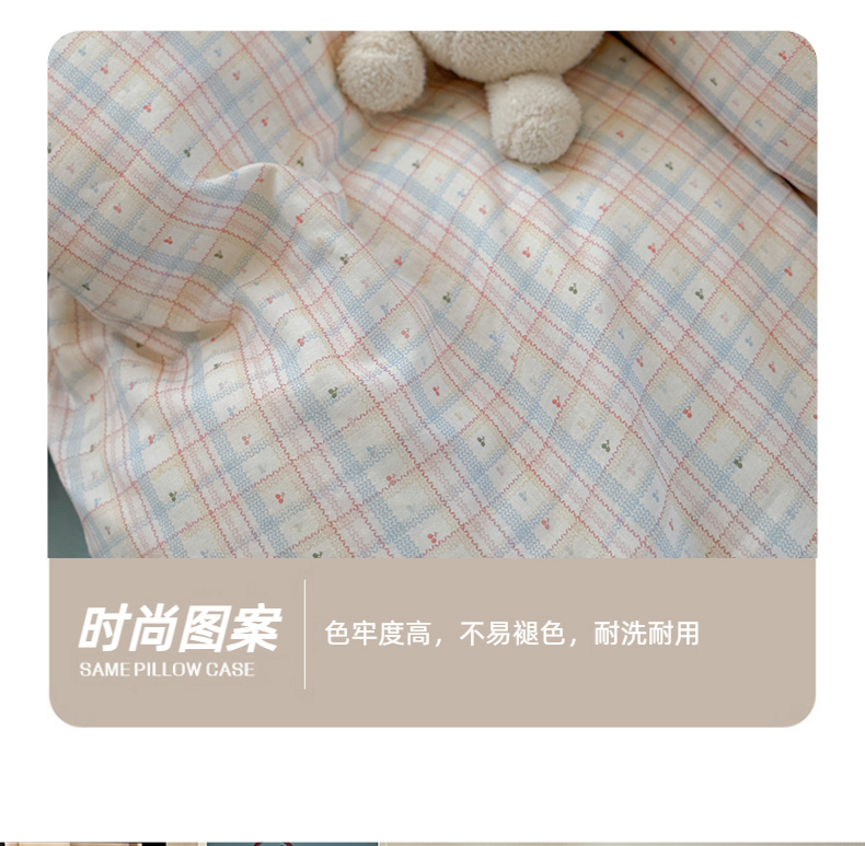 商品名称:金爱家 2025新款亲肤舒适纯棉双层纱四件套 双层纱-炫彩小樱桃
