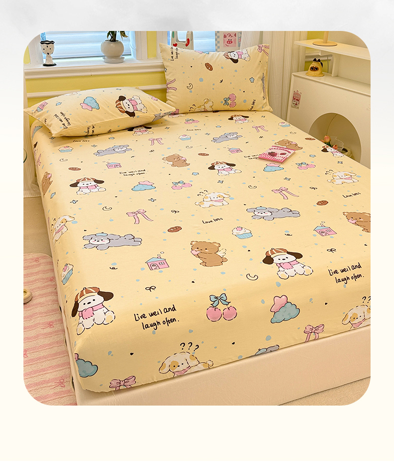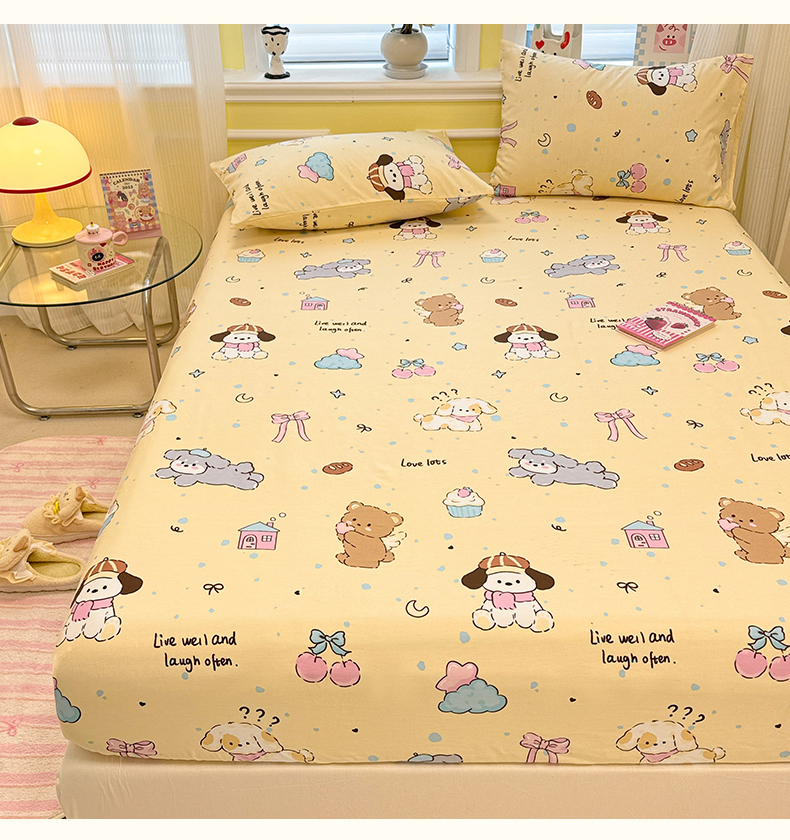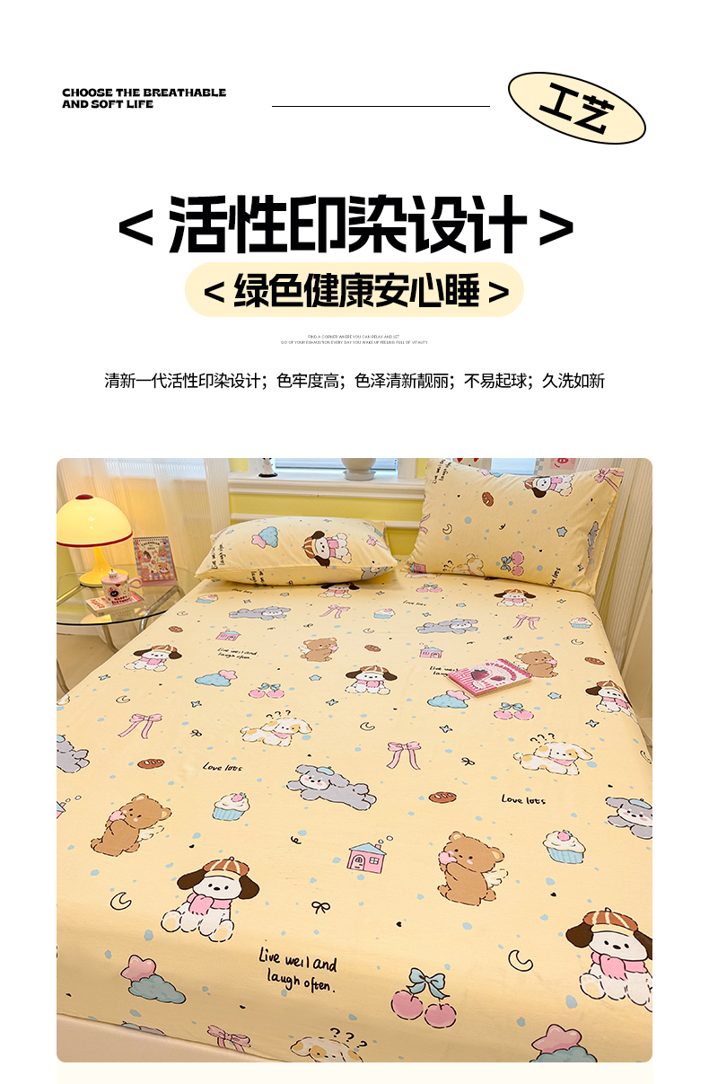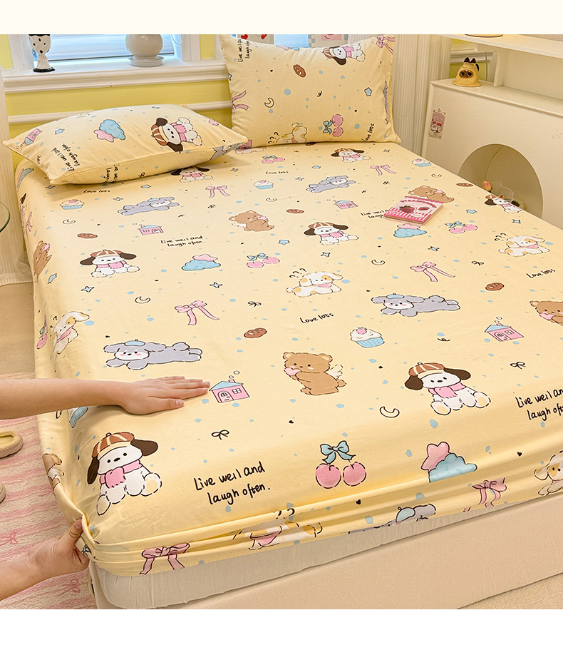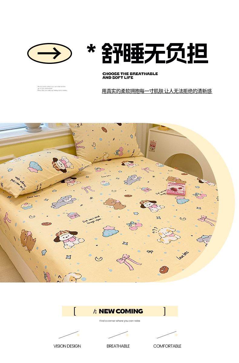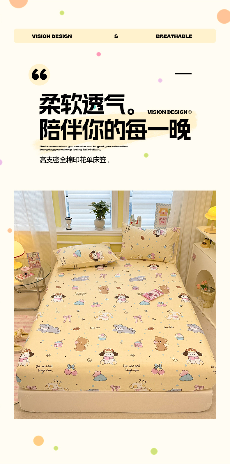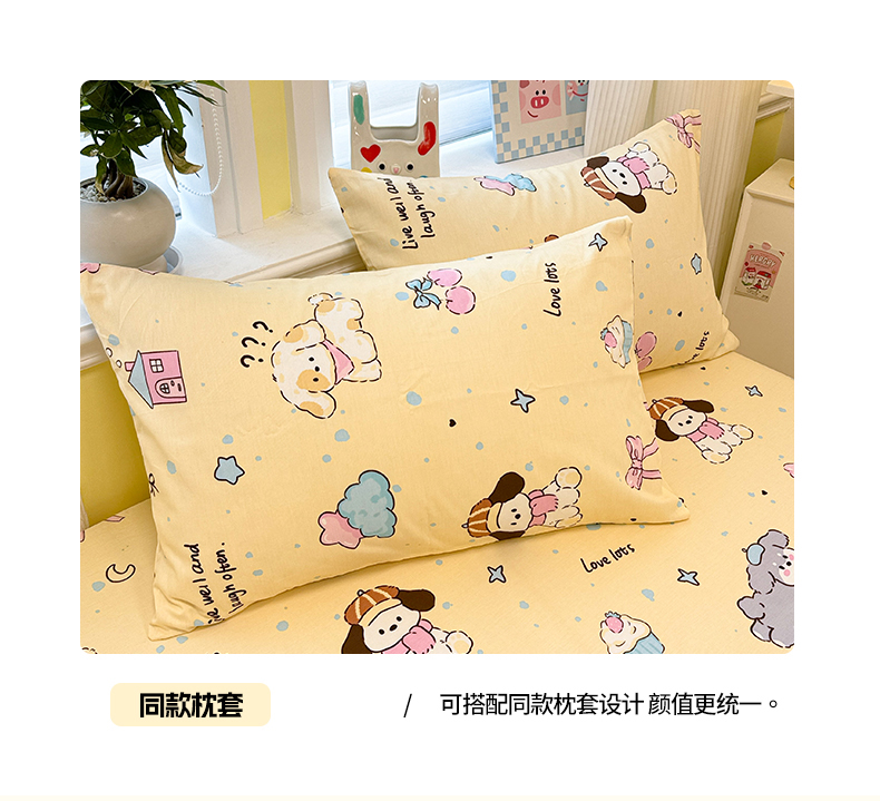 • 91家纺网 家纺一手货源 找家纺 吉象家纺 2025新款高支密全棉印花单品系列-单床笠 好奇狗