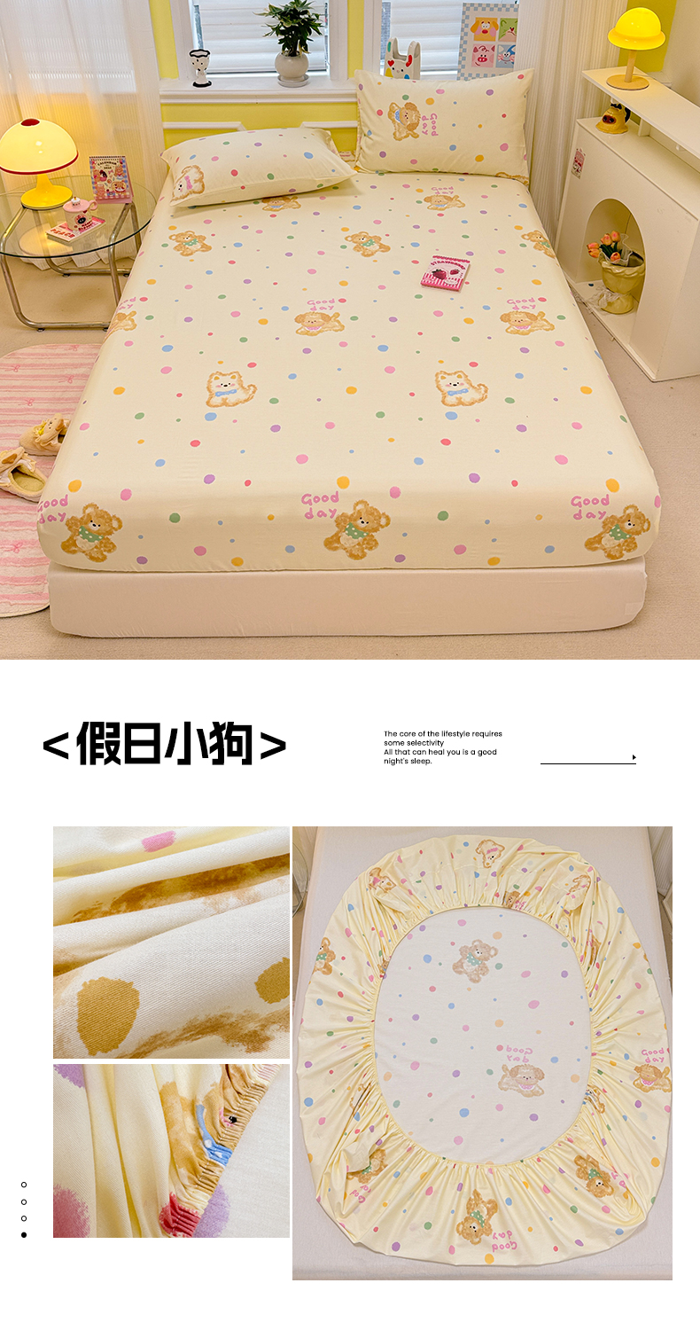 吉象家纺 2025新款高支密全棉印花单品系列-单床笠 小熊日记