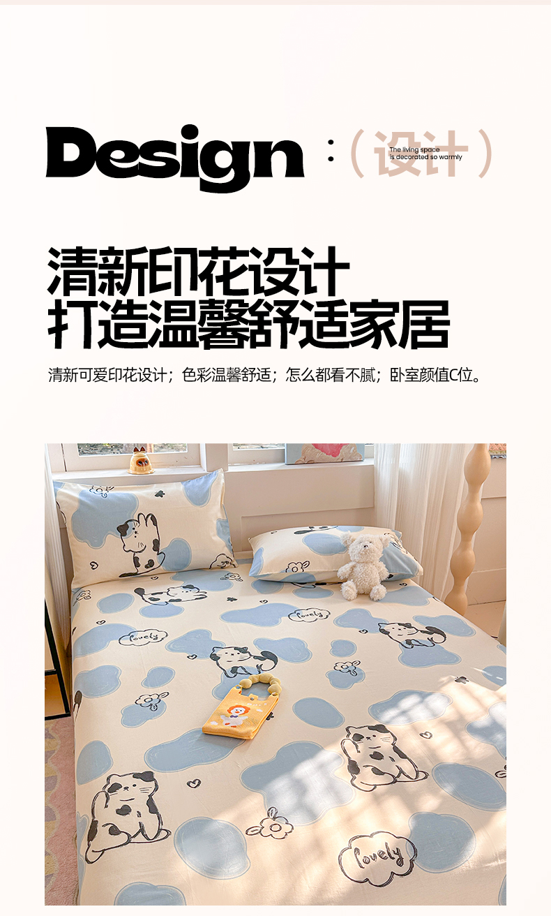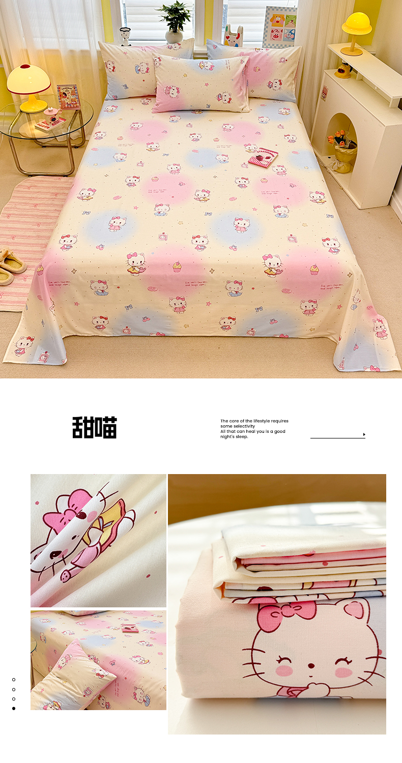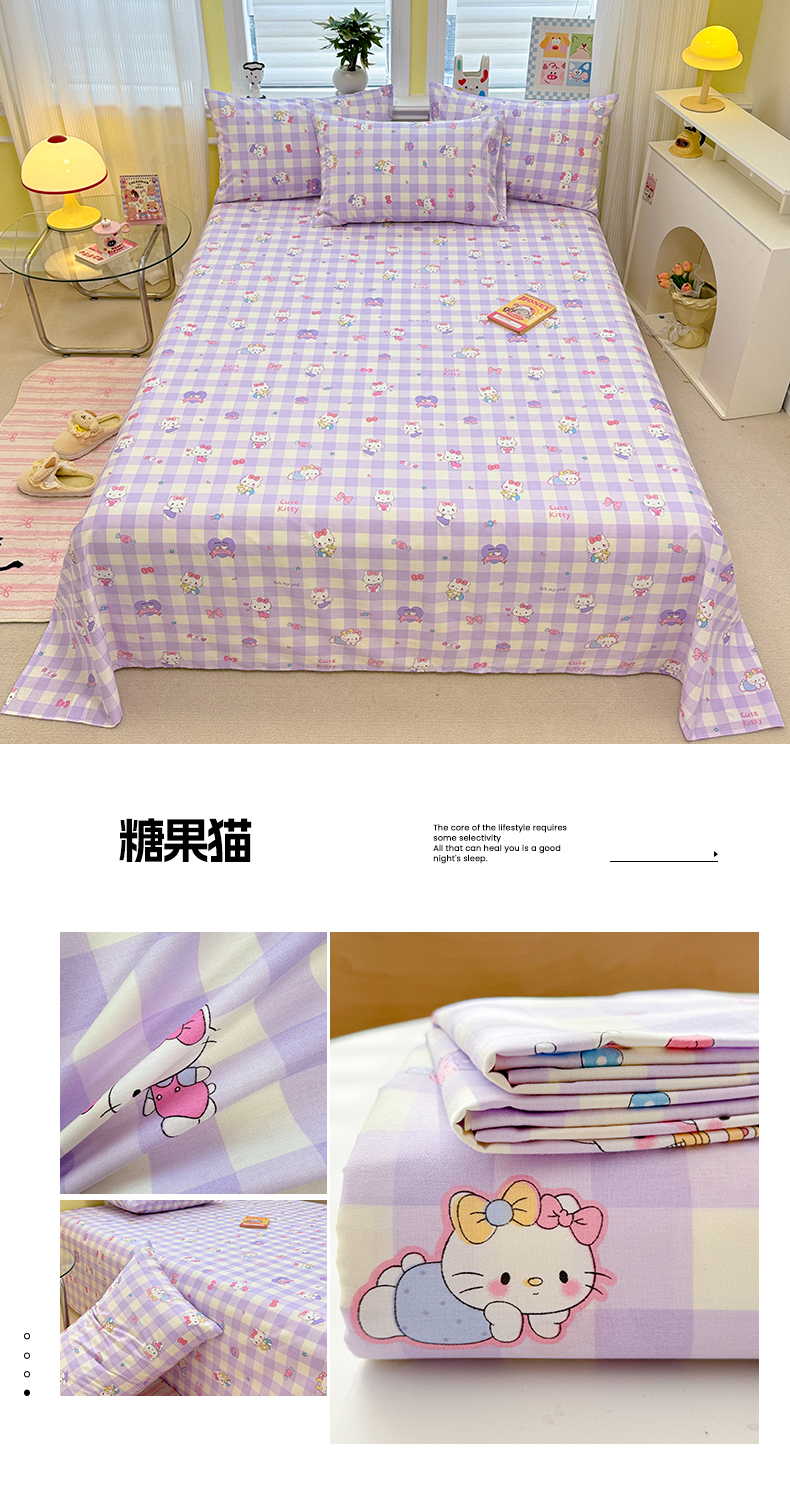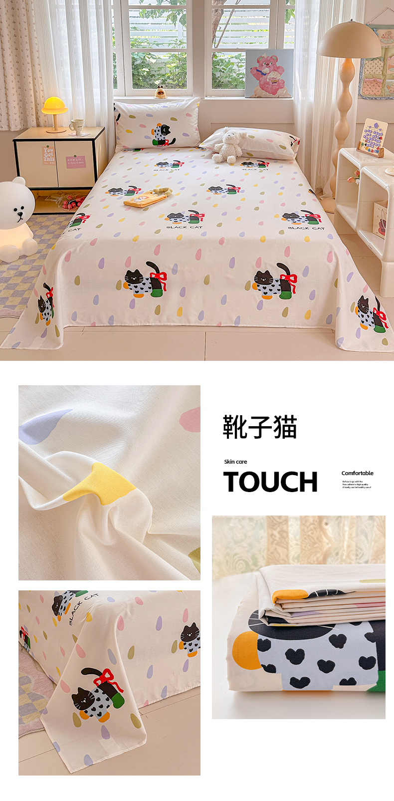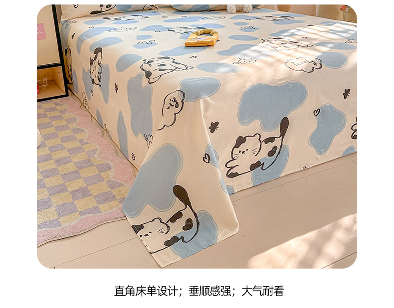 • 91家纺网 家纺一手货源 找家纺 吉象家纺 2025新款高支密全棉印花单品系列-单床单 奶牛猫