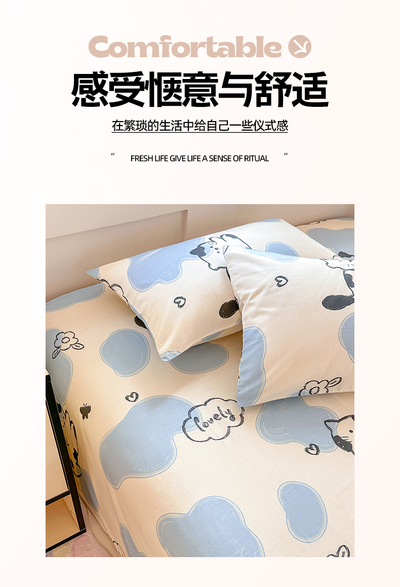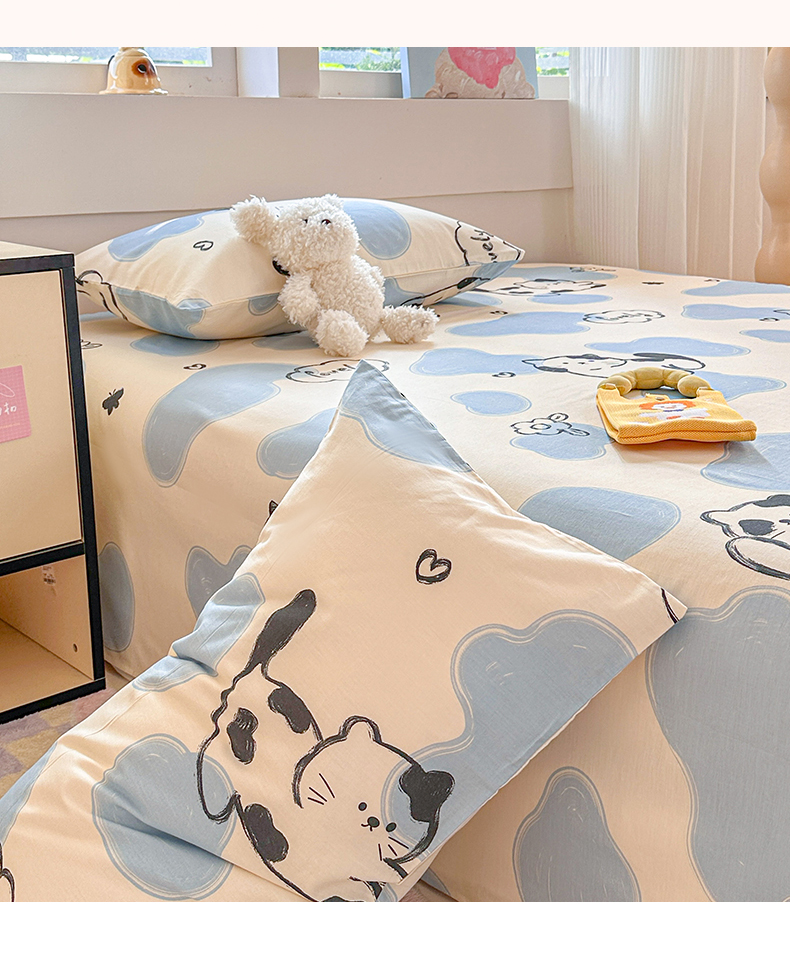 (总)吉象家纺 2025新款12868全棉印花单被套,蓝色泡芙狗,蘑菇小兔,奶油甜心熊,碎花狗狗,碎花小兔,爪爪会客厅