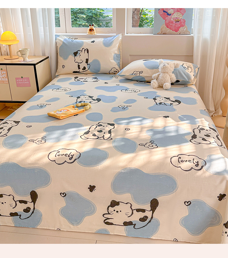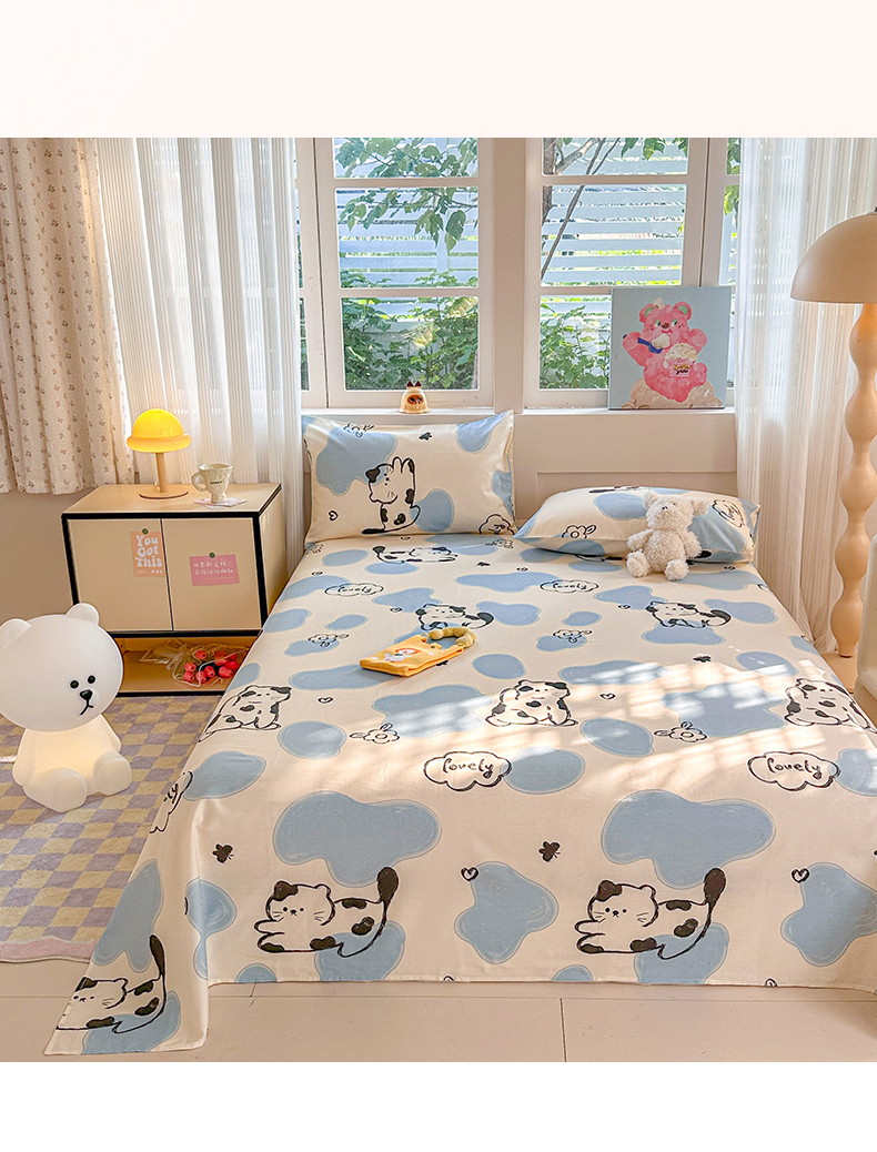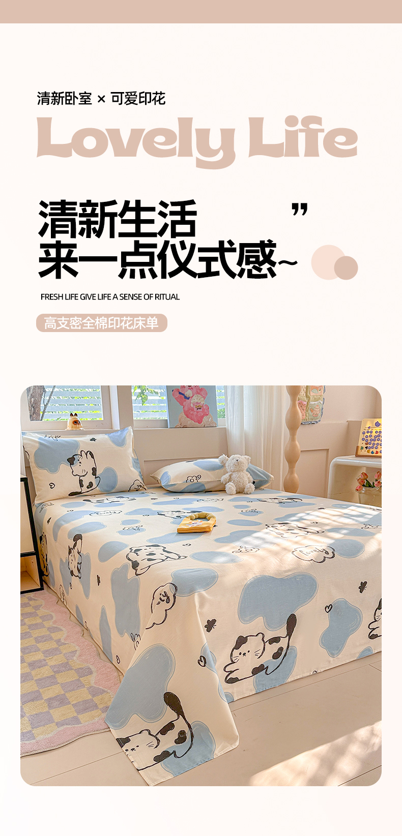 吉象家纺 2025新款高支密全棉印花单品系列-单床单 奶牛猫