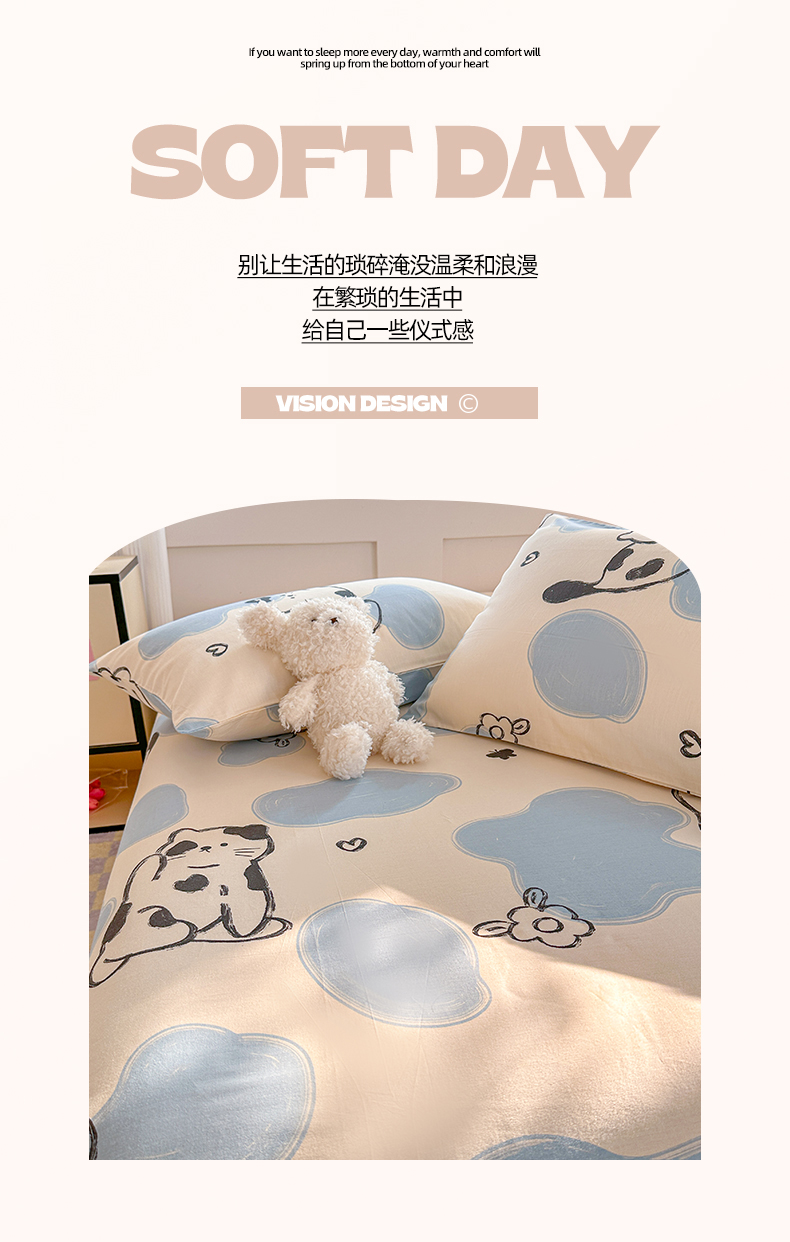 • 91家纺网 家纺一手货源 找家纺 (总)吉象家纺 2025新款12868全棉印花单被套,蓝色泡芙狗,蘑菇小兔,奶油甜心熊,碎花狗狗,碎花小兔,爪爪会客厅