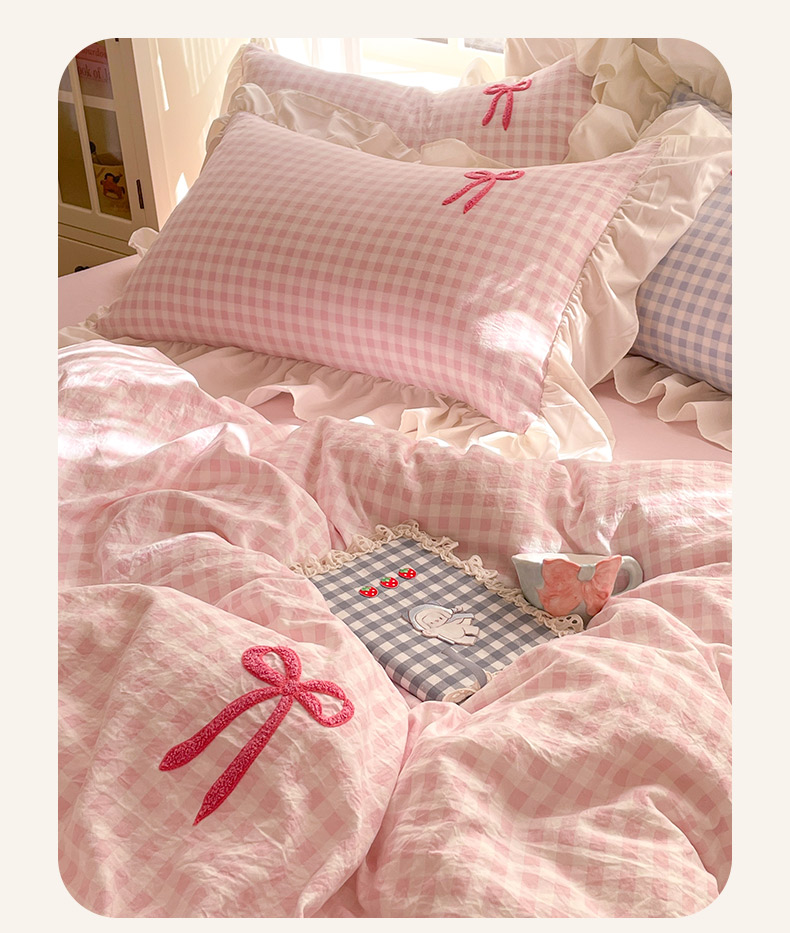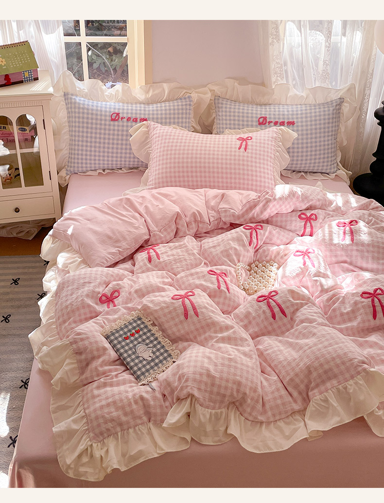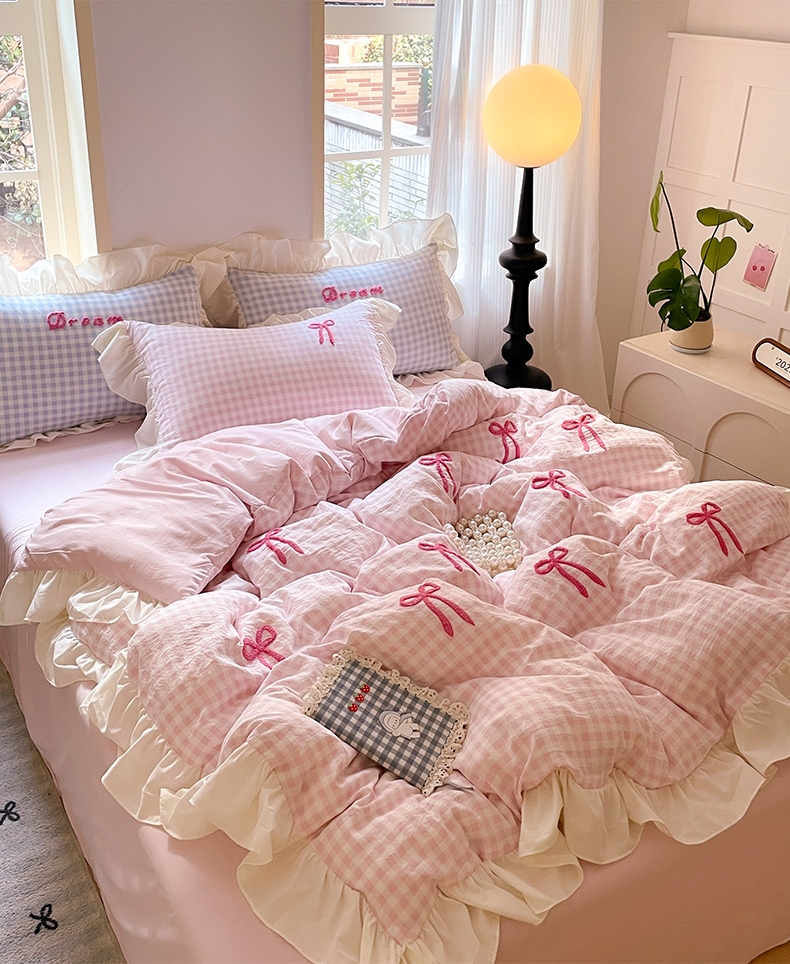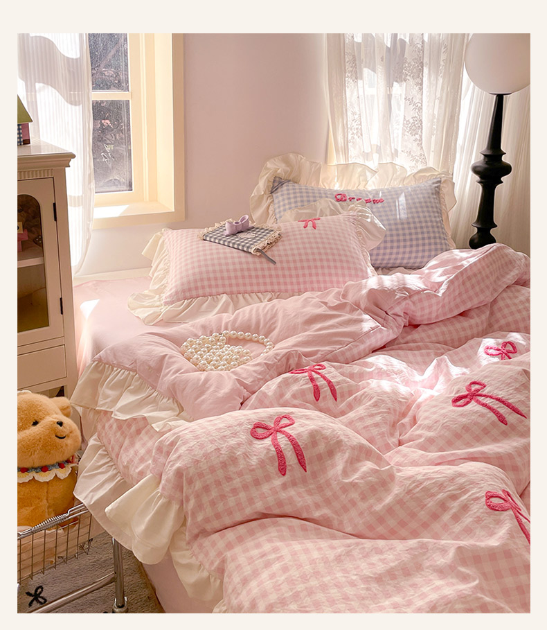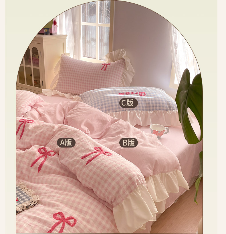 当前位置: 91家纺网 > 商品网购 > 床品套件 > 四件套 > 全棉普通四件套 > 沐辰2025春夏新款韩式花边款蝴蝶结四件套 韩式蝴蝶结-粉