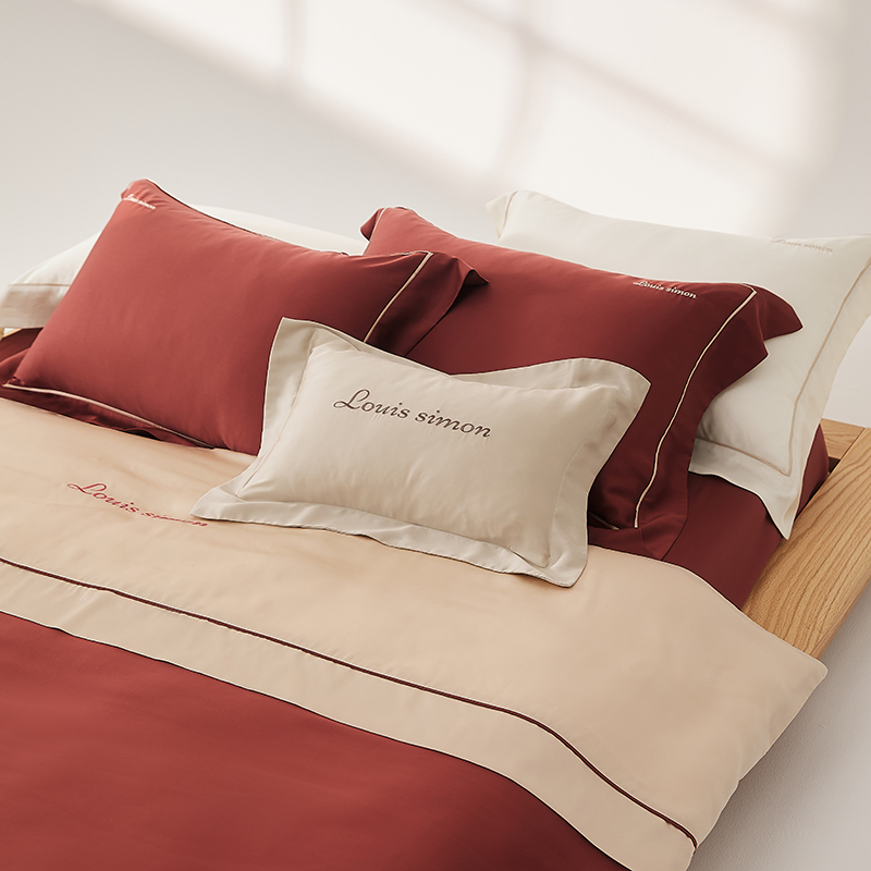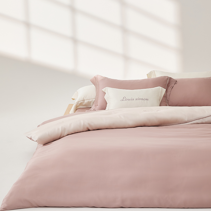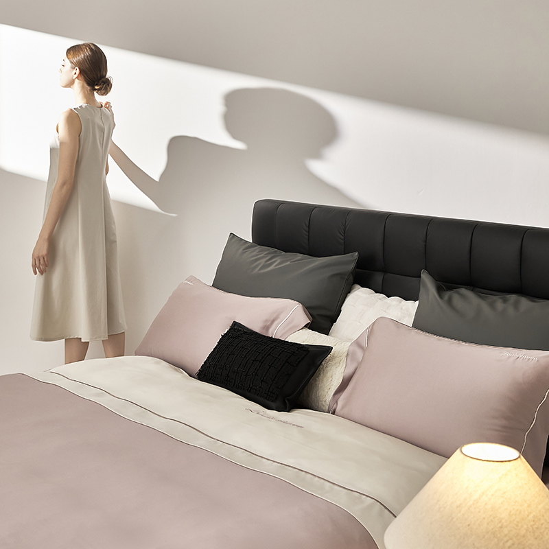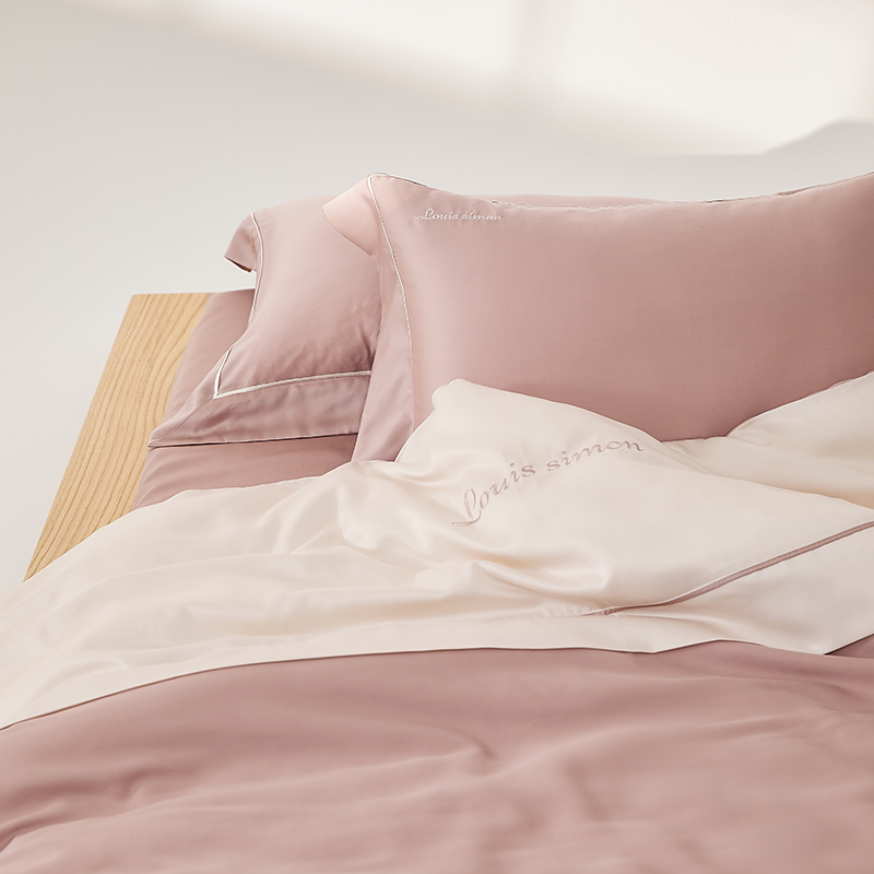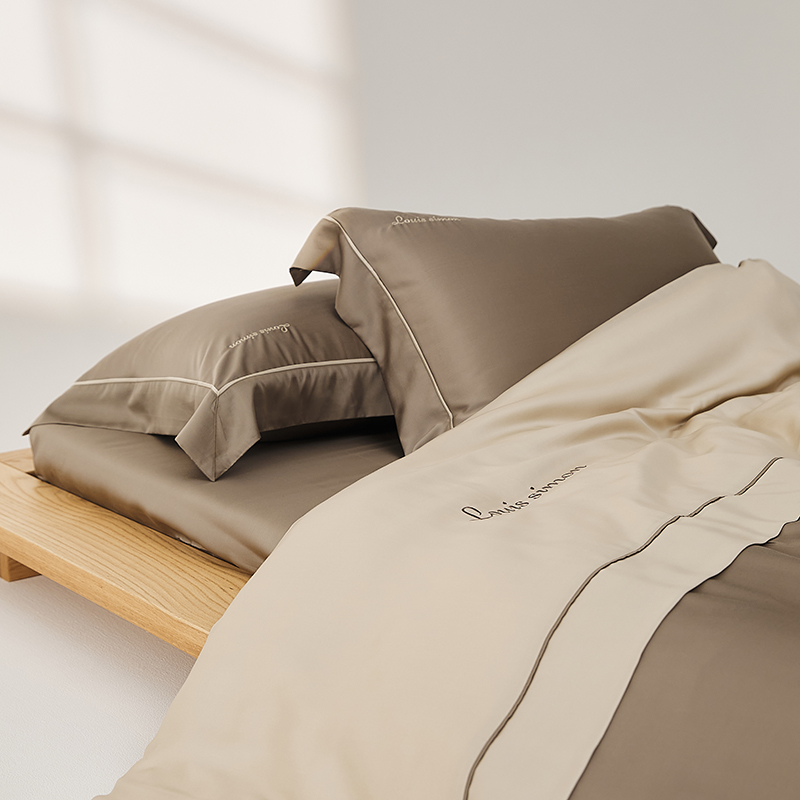 商品名称:涞澳家纺 2025新款天丝横头绣花款四件套-月影系列 月影-豆沙