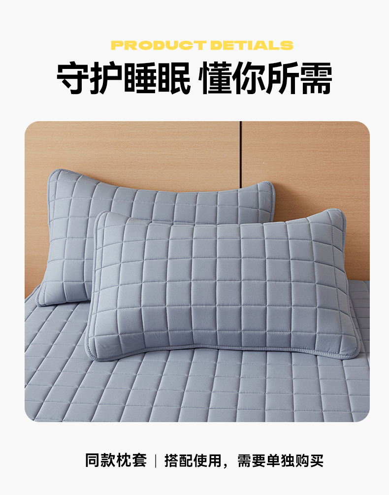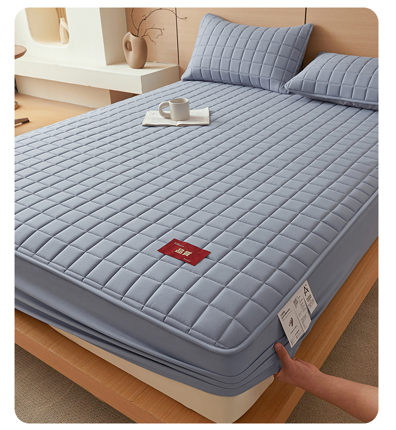 • 91家纺网 家纺一手货源 找家纺 布卢姆床垫 2025新款原棉A类贴标7A抗菌床笠 方格-蓝