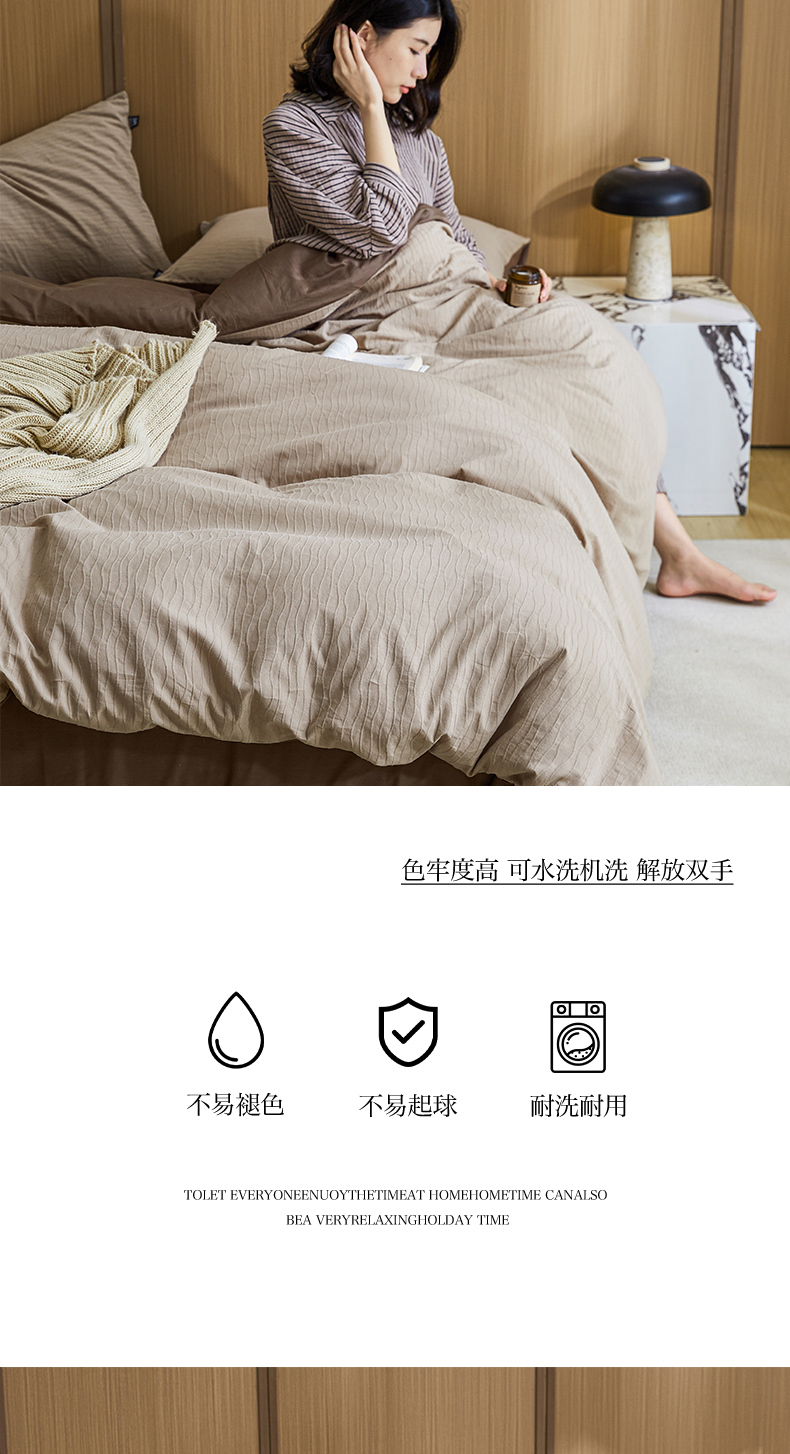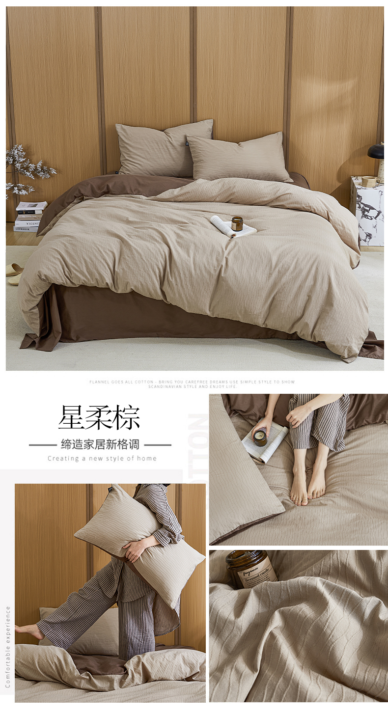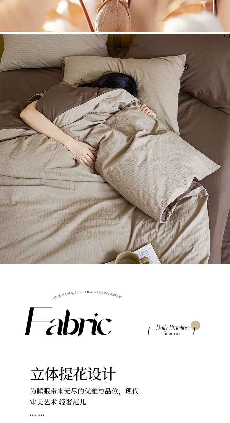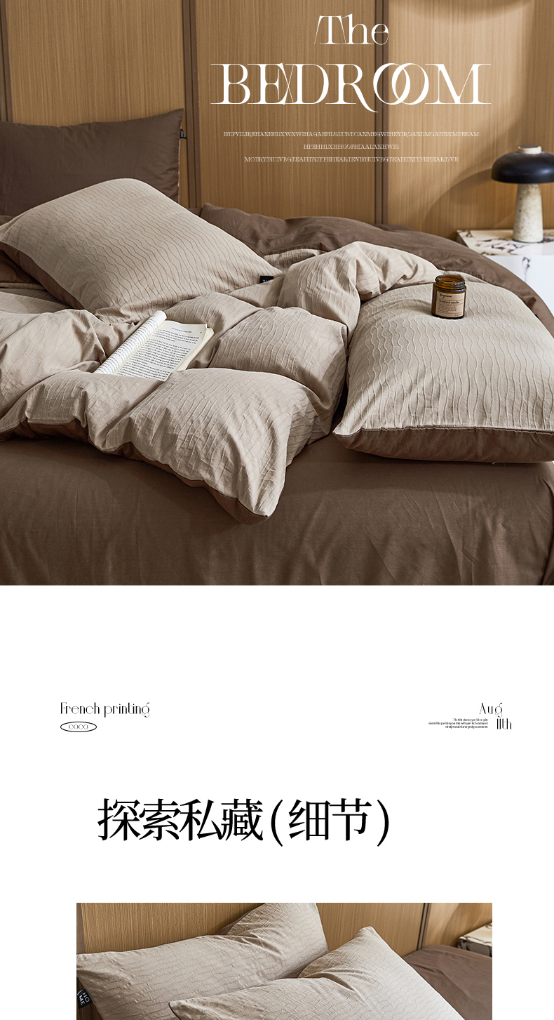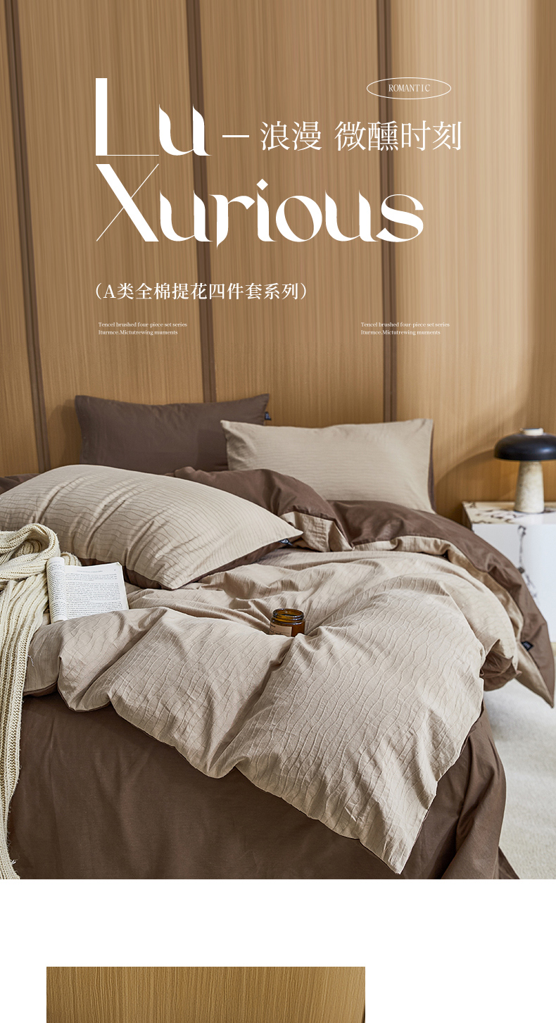 恋人优选 2025新款波纹纱全棉纯棉提花四件套 星柔棕