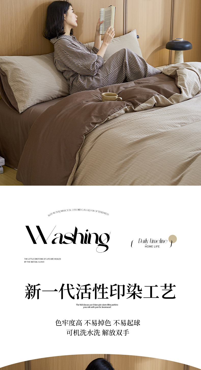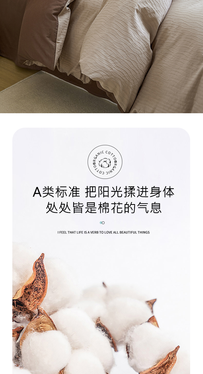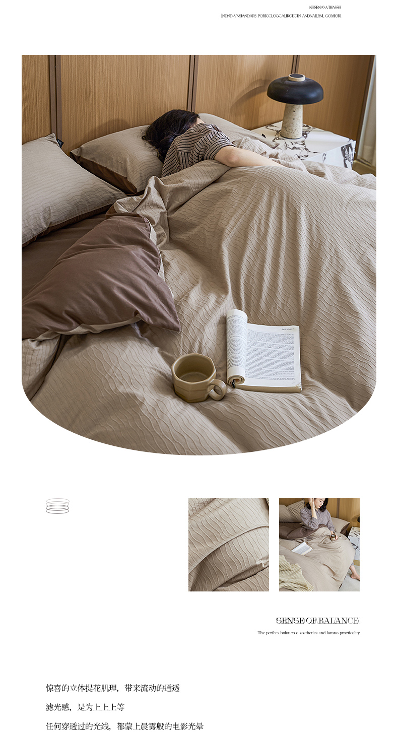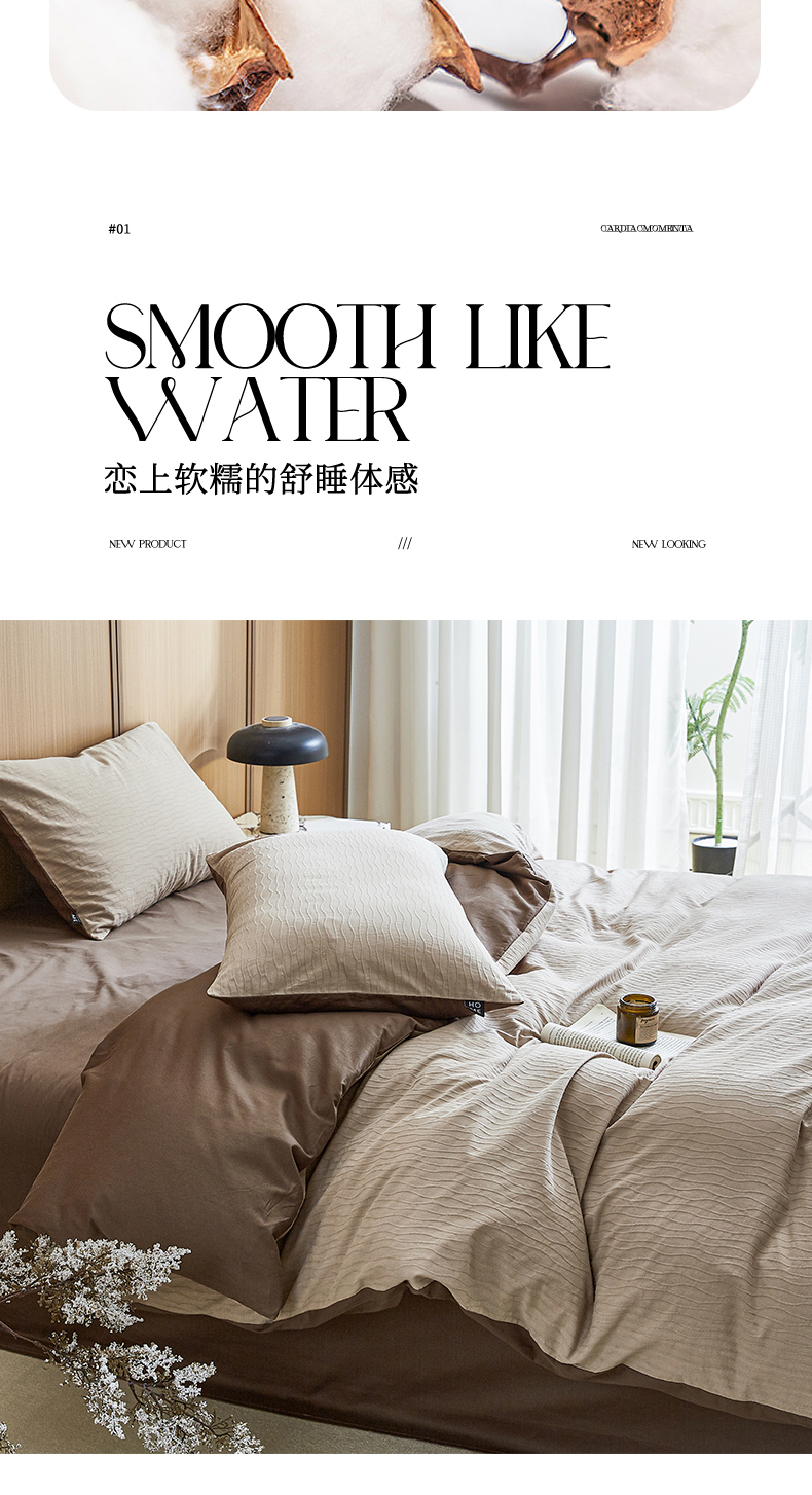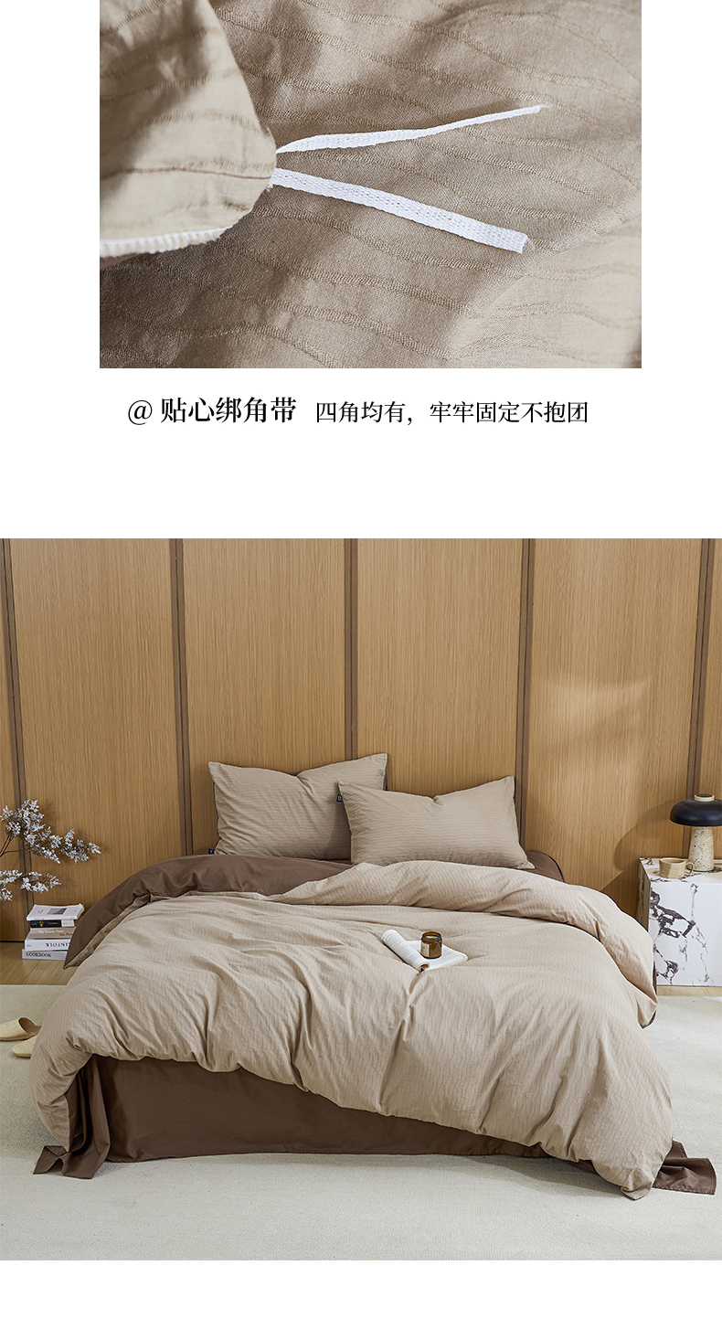 恋人优选 2025新款波纹纱全棉纯棉提花四件套 星柔棕