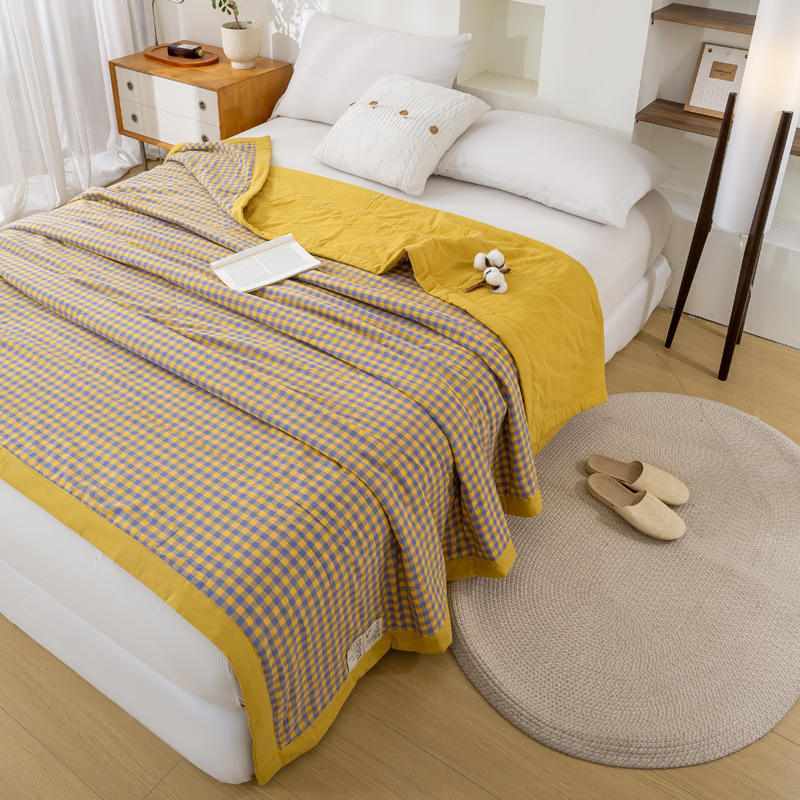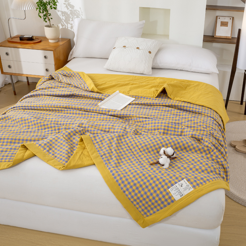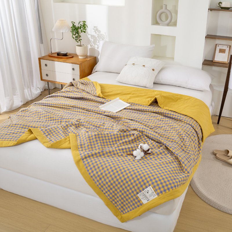 商品名称:美梦之都2025新款A类色织水洗棉夏被新疆棉花被空调被夏凉被被子被芯 紫黄小格