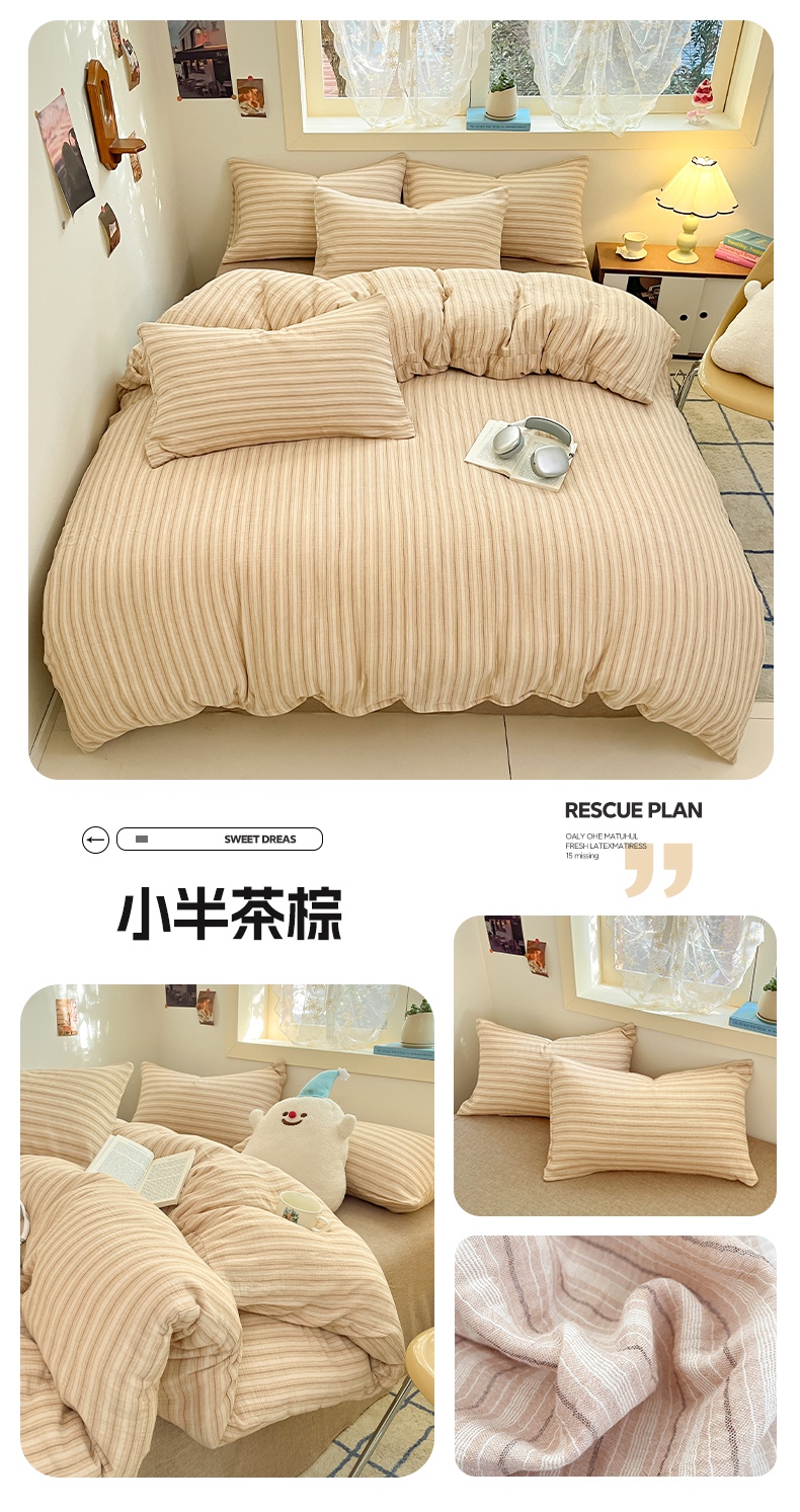 艾咪-Amy ntmy 2025新款条纹款全棉双层皱皱纱四件套 小半粉米