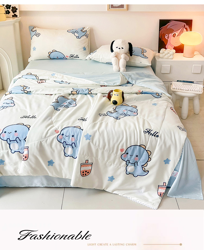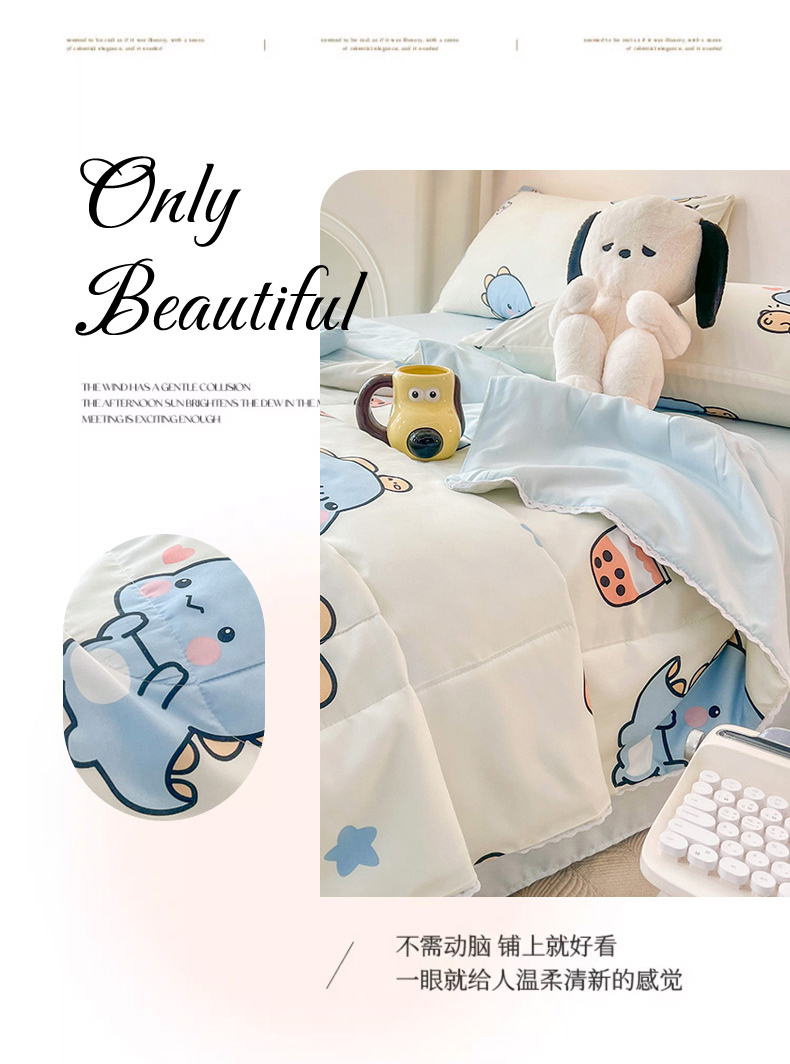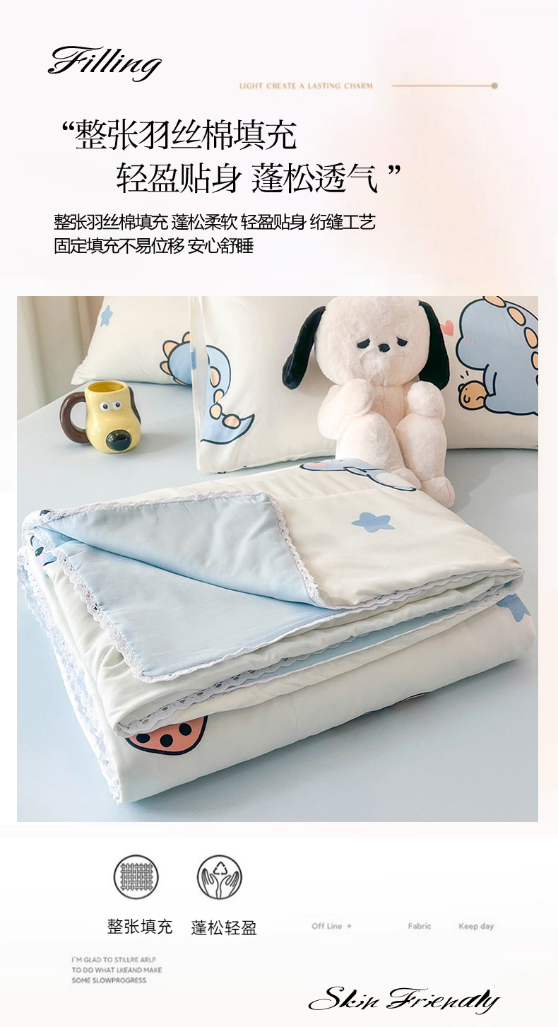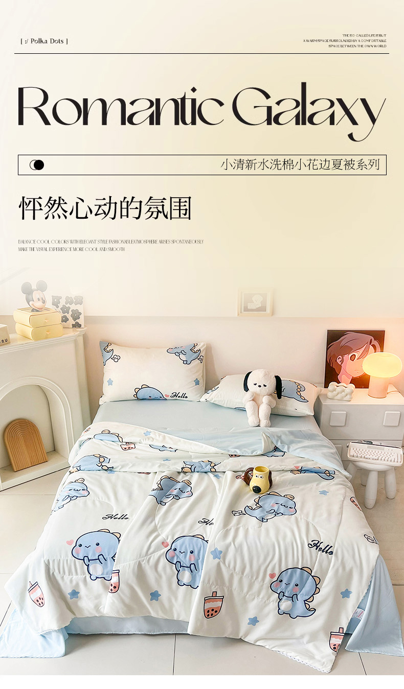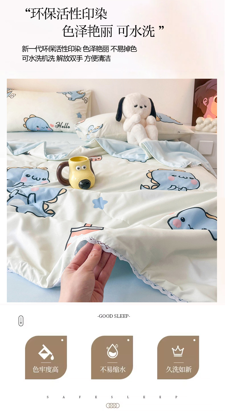 商品名称:倾慕家纺 2025新款A类小清新小花边水洗棉夏被系列 蓝色小龙