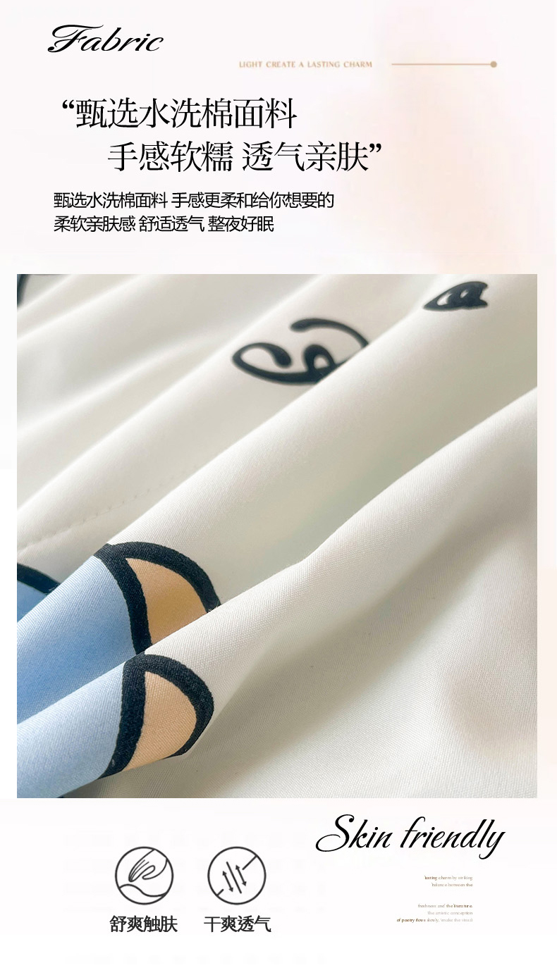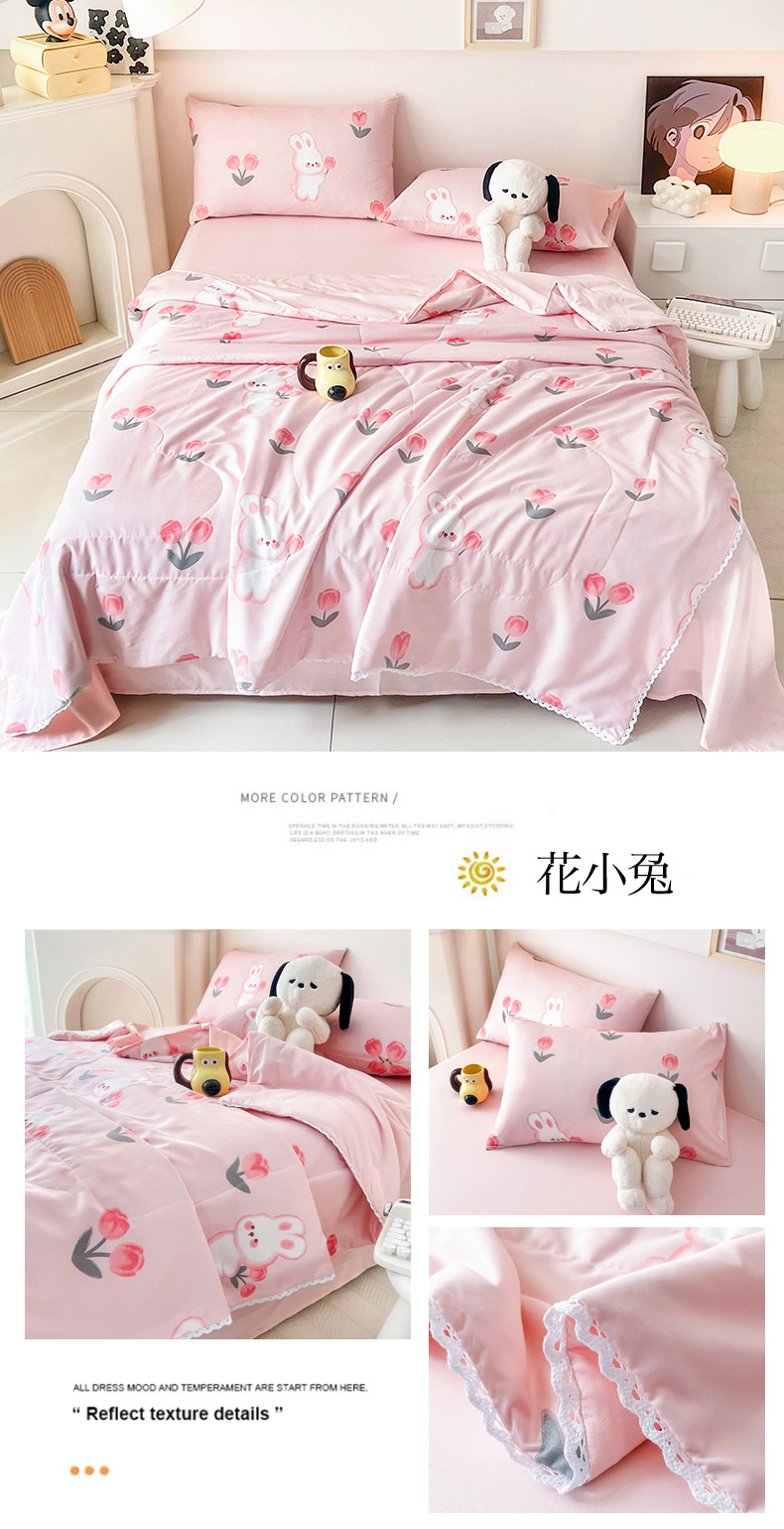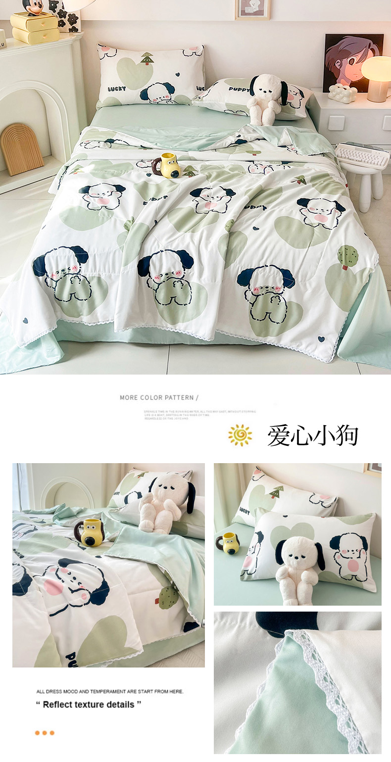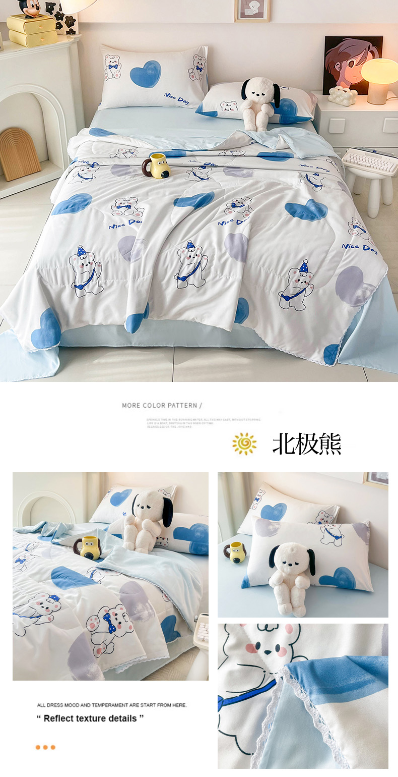 商品名称:倾慕家纺 2025新款A类小清新小花边水洗棉夏被系列 蓝色小龙