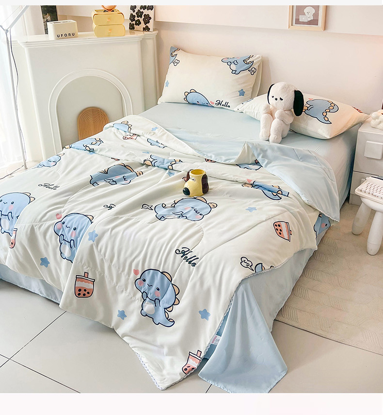 倾慕家纺 2025新款A类小清新小花边水洗棉夏被系列 蓝色小龙
