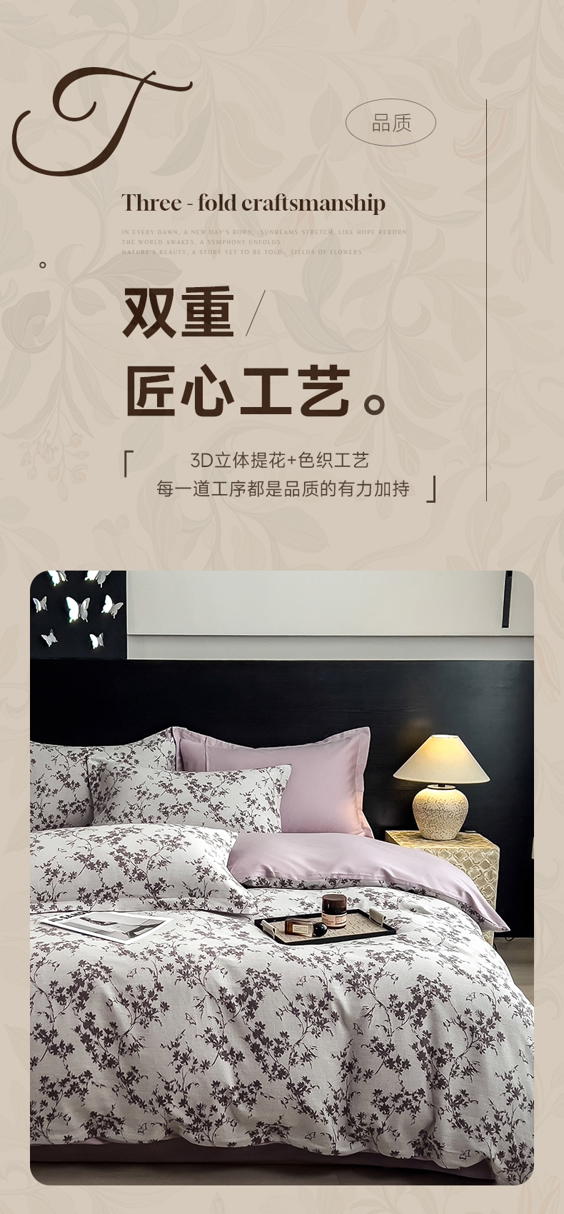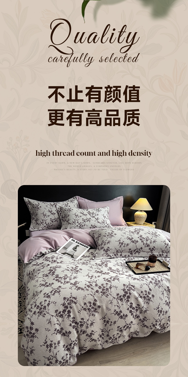 当前位置: 91家纺网 > 商品网购 > 床品套件 > 四件套 > 全棉普通四件套 > 倾慕家纺 2025新款60S提花全棉四件套 爱玲说紫
