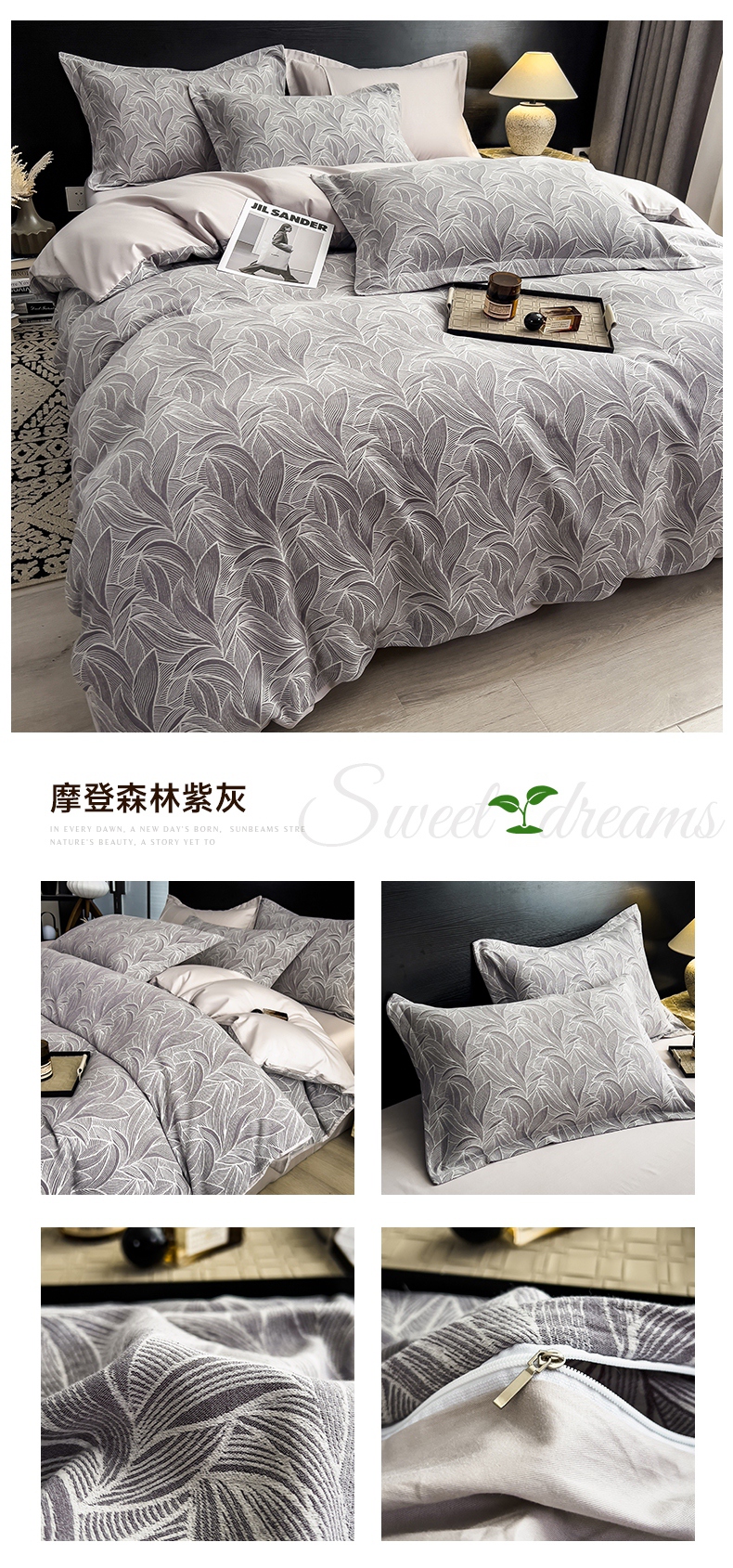 当前位置: 91家纺网 > 商品网购 > 床品套件 > 四件套 > 全棉普通四件套 > 倾慕家纺 2025新款60S提花全棉四件套 拾秋深灰