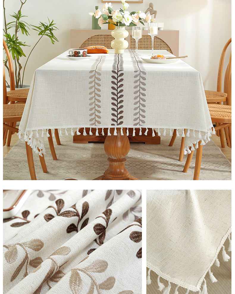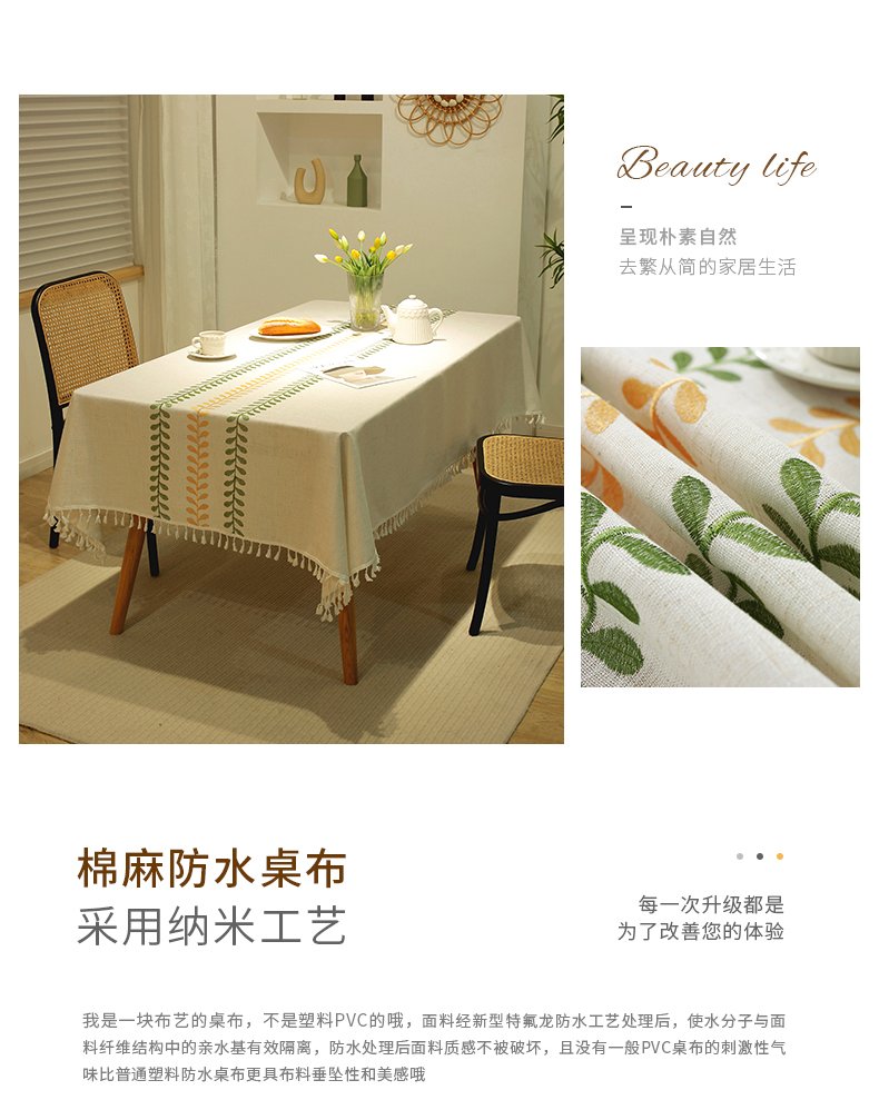 当前位置: 91家纺网 > 商品网购 > 居家布艺 > 餐桌布 > (总)南通大梧纺织 2025新款绣花桌布防水-春叶秋叶