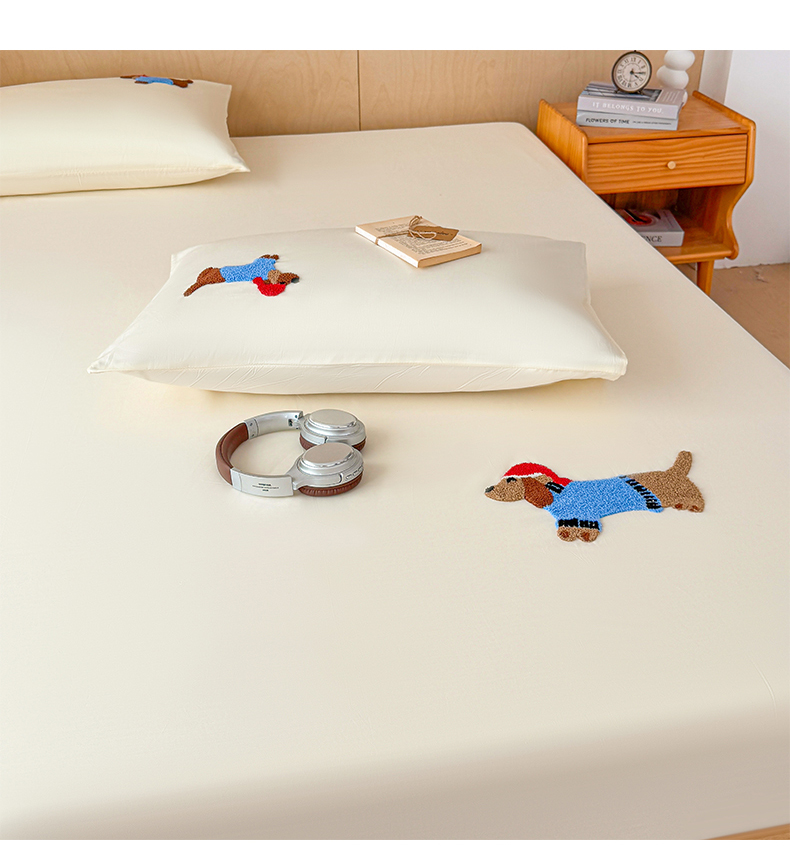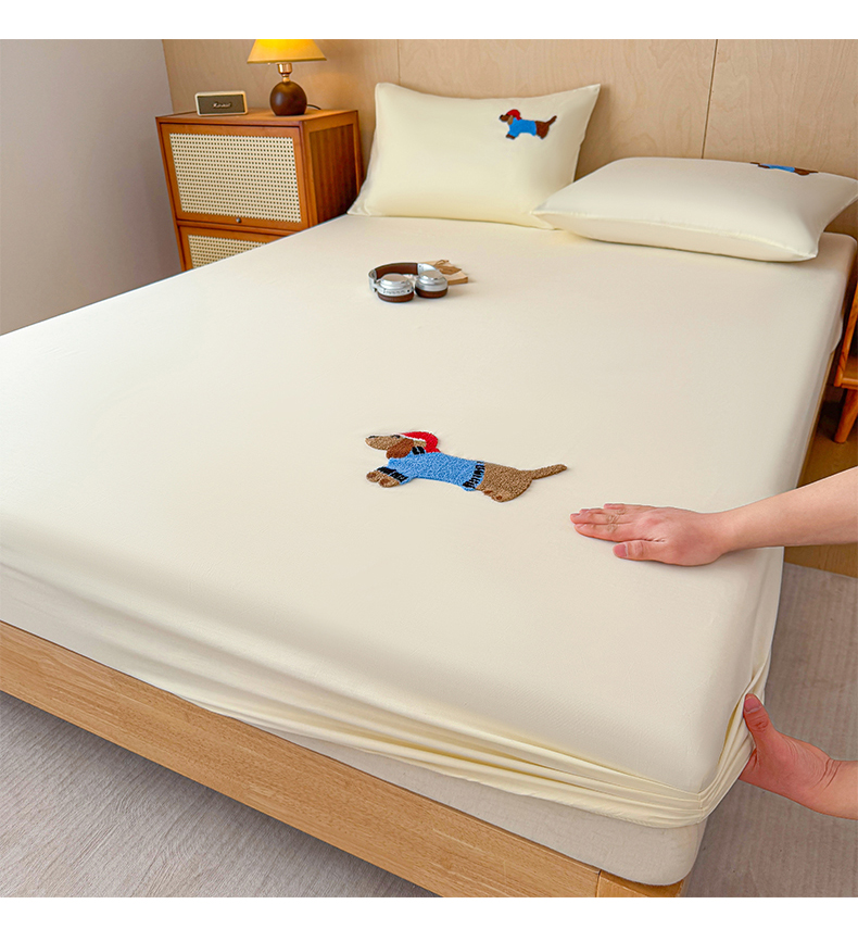 澳梵家居 2025新款A类全棉毛巾绣床笠 腊肠小狗-白