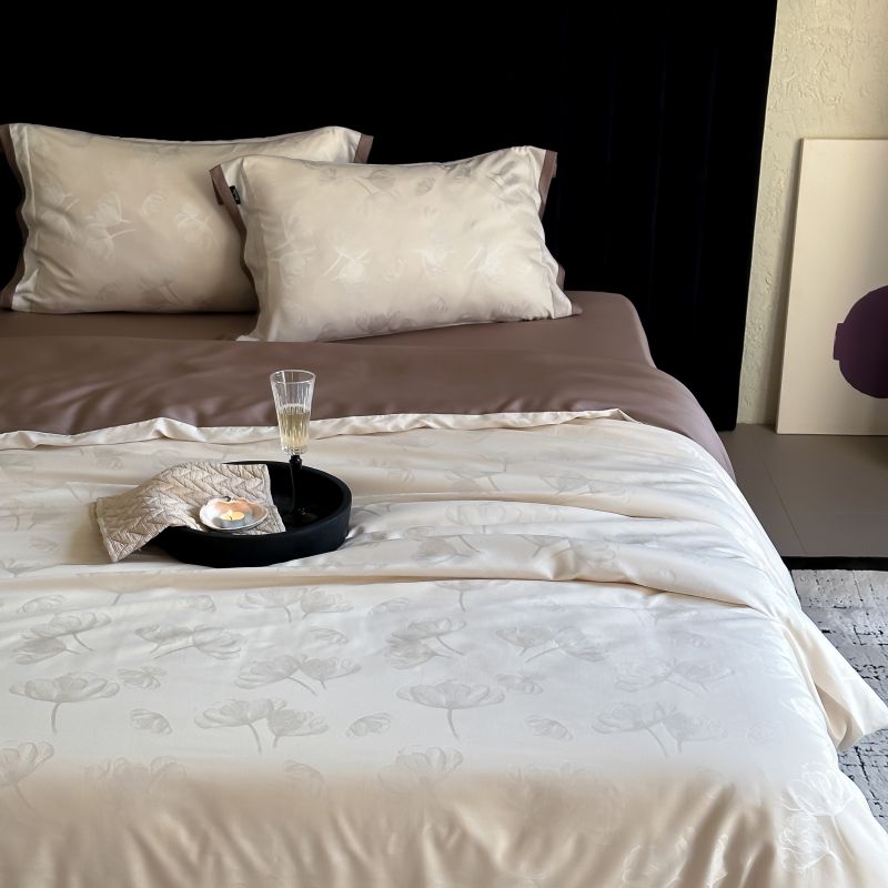 (总)玉宇阁家居 2023新款春夏60支兰精天丝拼色四件套,都市灰香槟,海盐松露,芥末黄香槟,裸粉香槟,茉莉奶绿,浅灰鹅黄,若草乳白