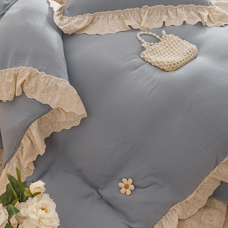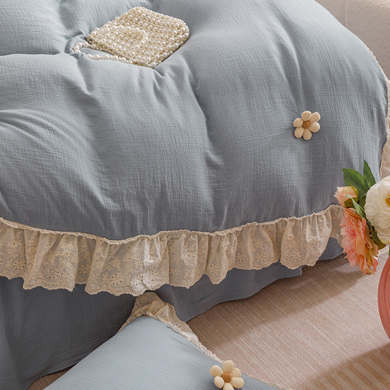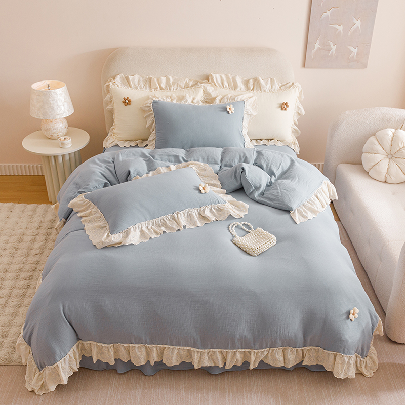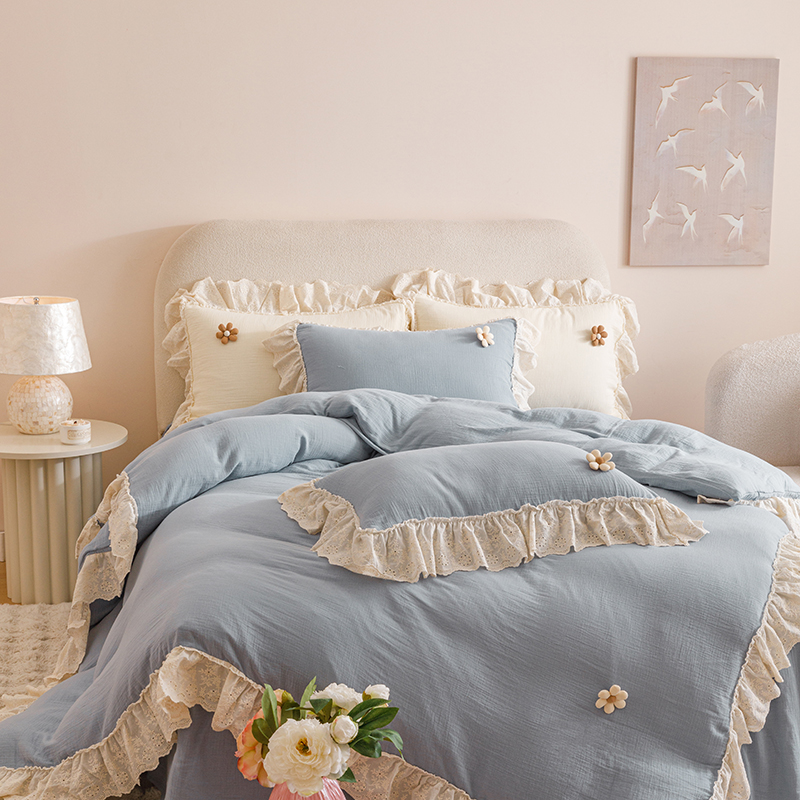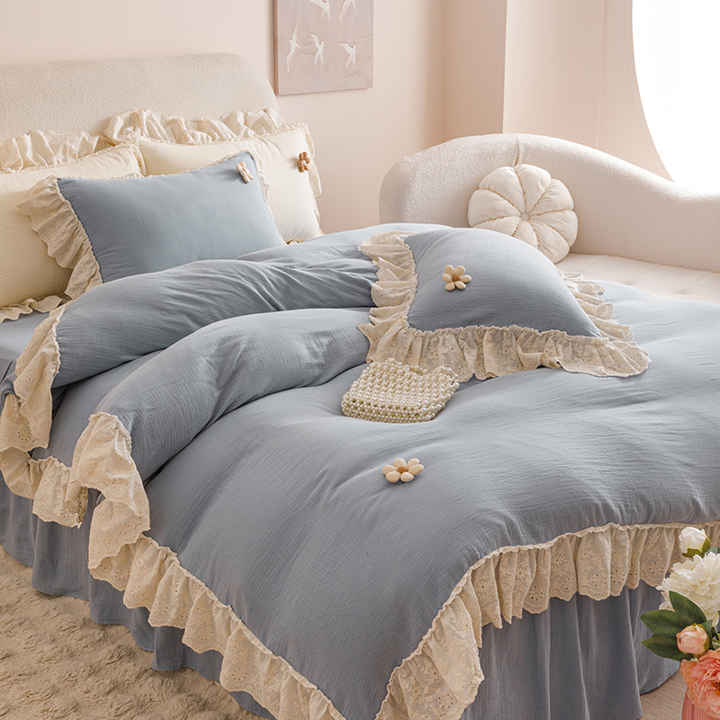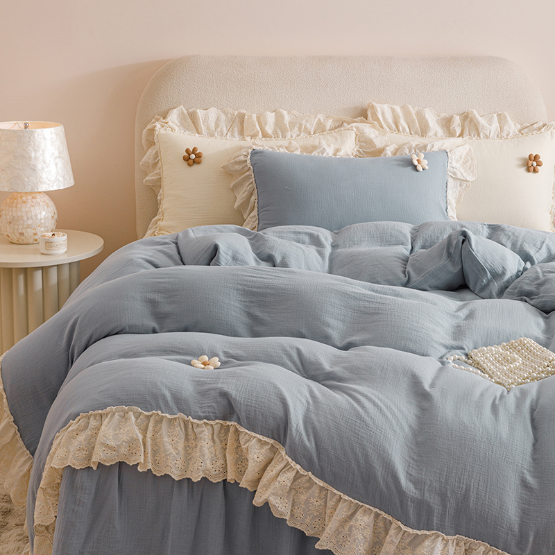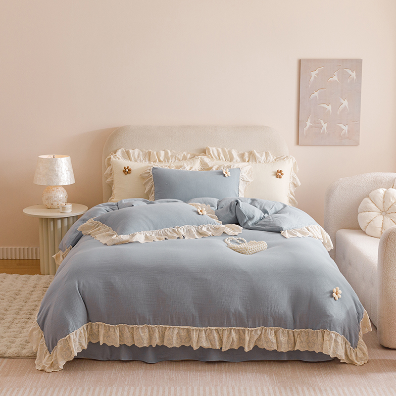 (总)北纬27度 2025新款全棉长绒棉纯棉高定春款花边四件套-一笑倾城 风格二,一笑倾城-天蓝,一笑倾城-香槟金,一笑倾城-珠光粉